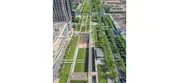 A sunken garden is carved between the park's subway station and adjoining development parcels, improving the walking experience to and from transit while enriching the spatial composition of the park in its conveyance of an extended descending and ascending experience. Additional commercial frontage lines the garden perimeter, which activates the garden space while introducing revenue-generating program to the park to support its operations and maintenance costs.