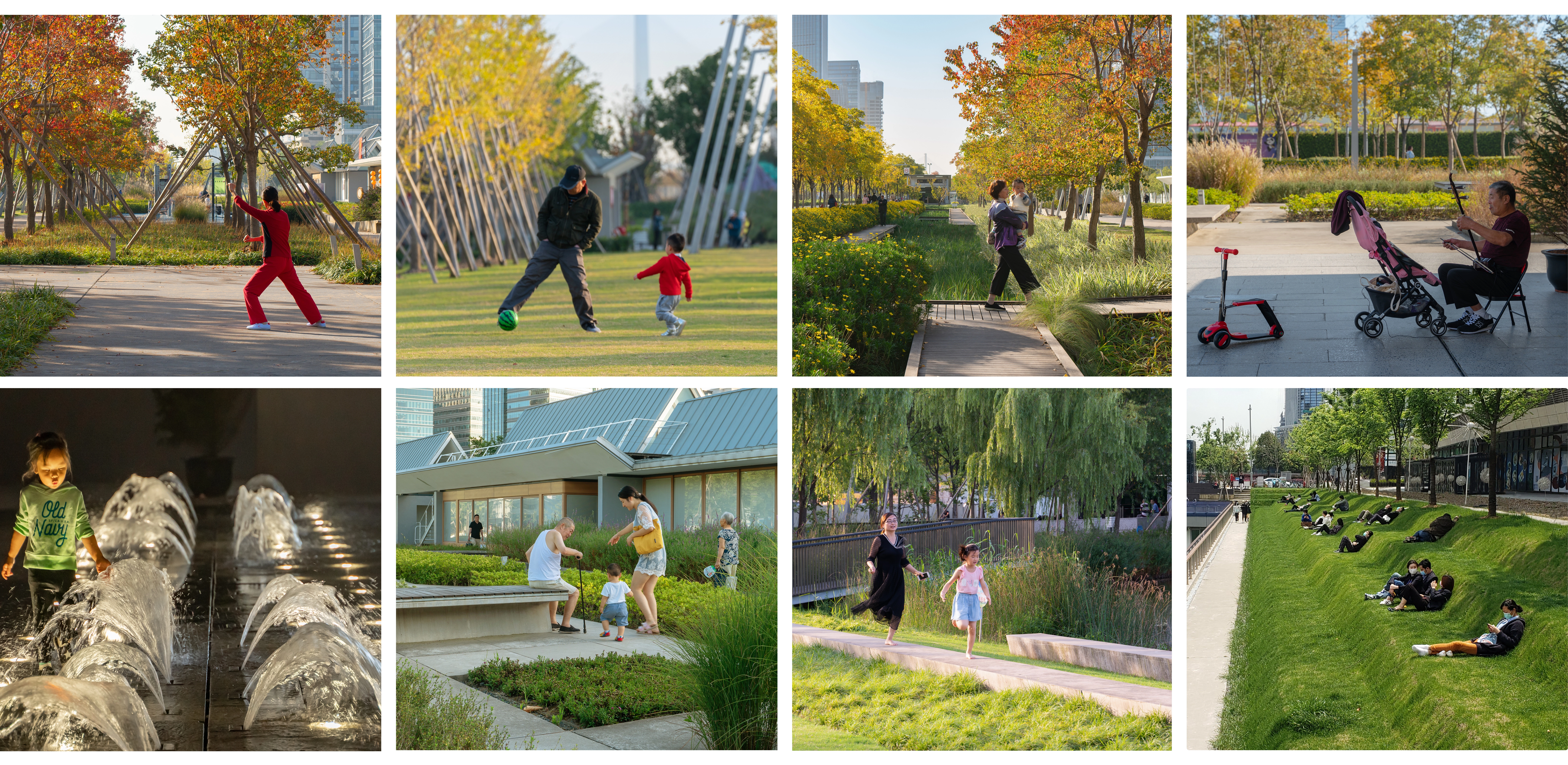 Diverse programs are organized in various park spaces, accessible to all and primarily free of charge. Active lifestyles are nurtured in multiple forms of runways and the multipurpose lawn with a capacity for 3,500person events or five simultaneous five-on-five soccer games. Cultural events and performances for audiences up to 900 people are accommodated in the sunken garden, and various restaurants and public service facilities scattered throughout the park provide intimate spaces for smaller social gatherings like office parties and family reunions. Private conversations and reflection take place in the park’s multiple gardens, riverfront overlooks, and the birdwatching grove, offering a respite from busy urban life. The entire park is universally accessible, providing equal opportunities for people at the full range of ability levels. The park serves as a year-round outdoor destination for nearby residents, office workers, families, and students.