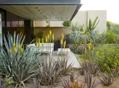 The firm's experiential approach to design, procurement and placement culminated in a judicious balance of intervention and restoration, of reshaped space, redirected views and ultimately an abundant interplay between flora, light and shadow. As a result, the site was transformed into a spectacular celebration of awe-inspiring desert plant life. Each garden gallery emanates a distinct landscape essence; every window looking out presents a new focal point - a sculptural Queen of the Night, the twisted form of an Ironwood tree, a field of colorful shades of blue and aqua succulents and white glowing cactus or the rich texture of house walls contrasted with sculptural cacti. Individually, the diverse gardens encase a rich interplay of like or complimentary plant species from arid regions around the world; collectively, the gardens provide a year-round show of marvel cascading through the landscape.