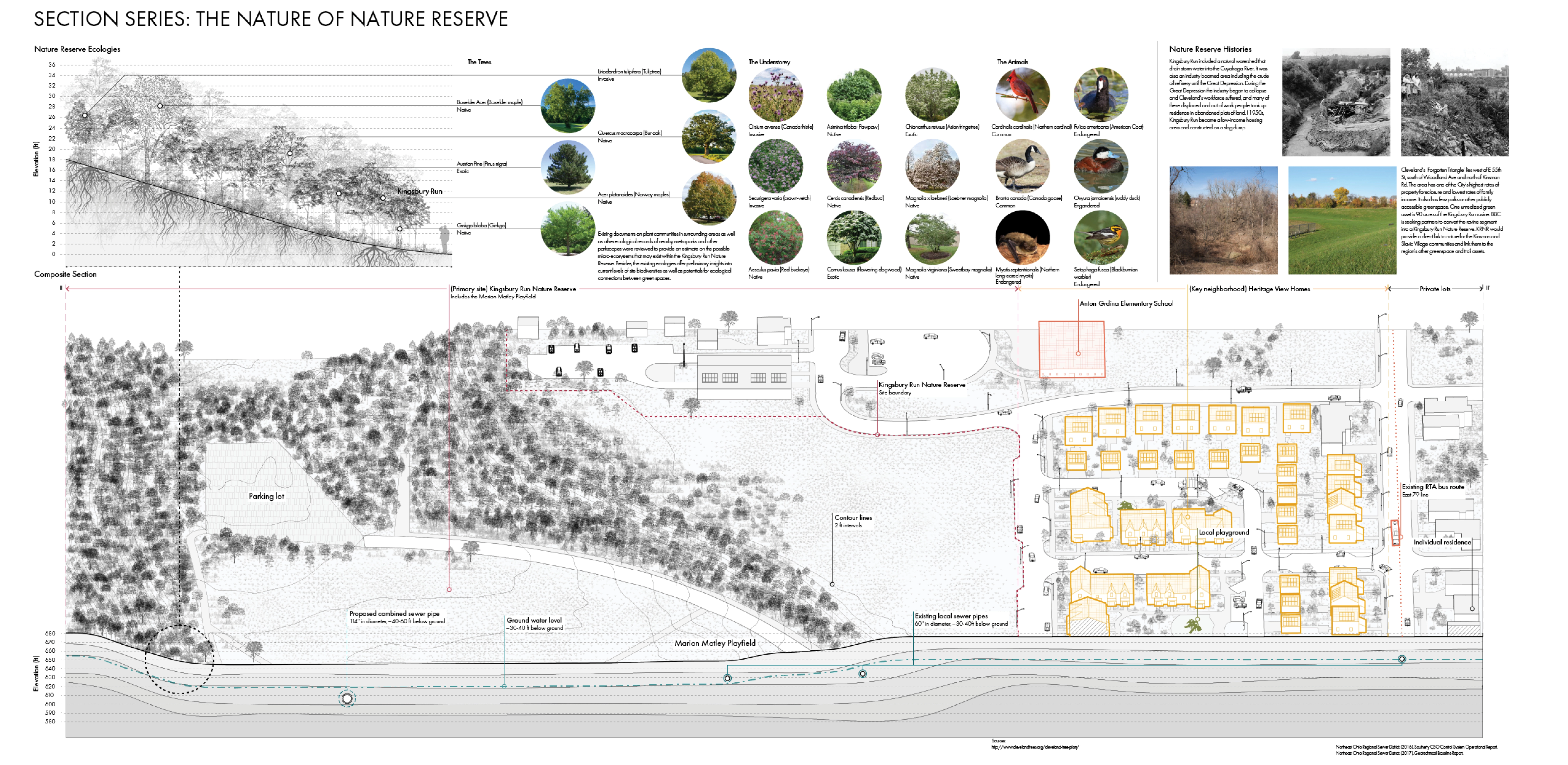 Kingsbury Run Nature Reserve: Collective Re-imagination as an analysis, research and community engagement intensive envisioning project combines the different qualities of the site and the people to suggest a vastly dynamic possibility that promotes local sustainability, resiliency, diversity and last but not least, social equity. It is a project that imagines with the people.