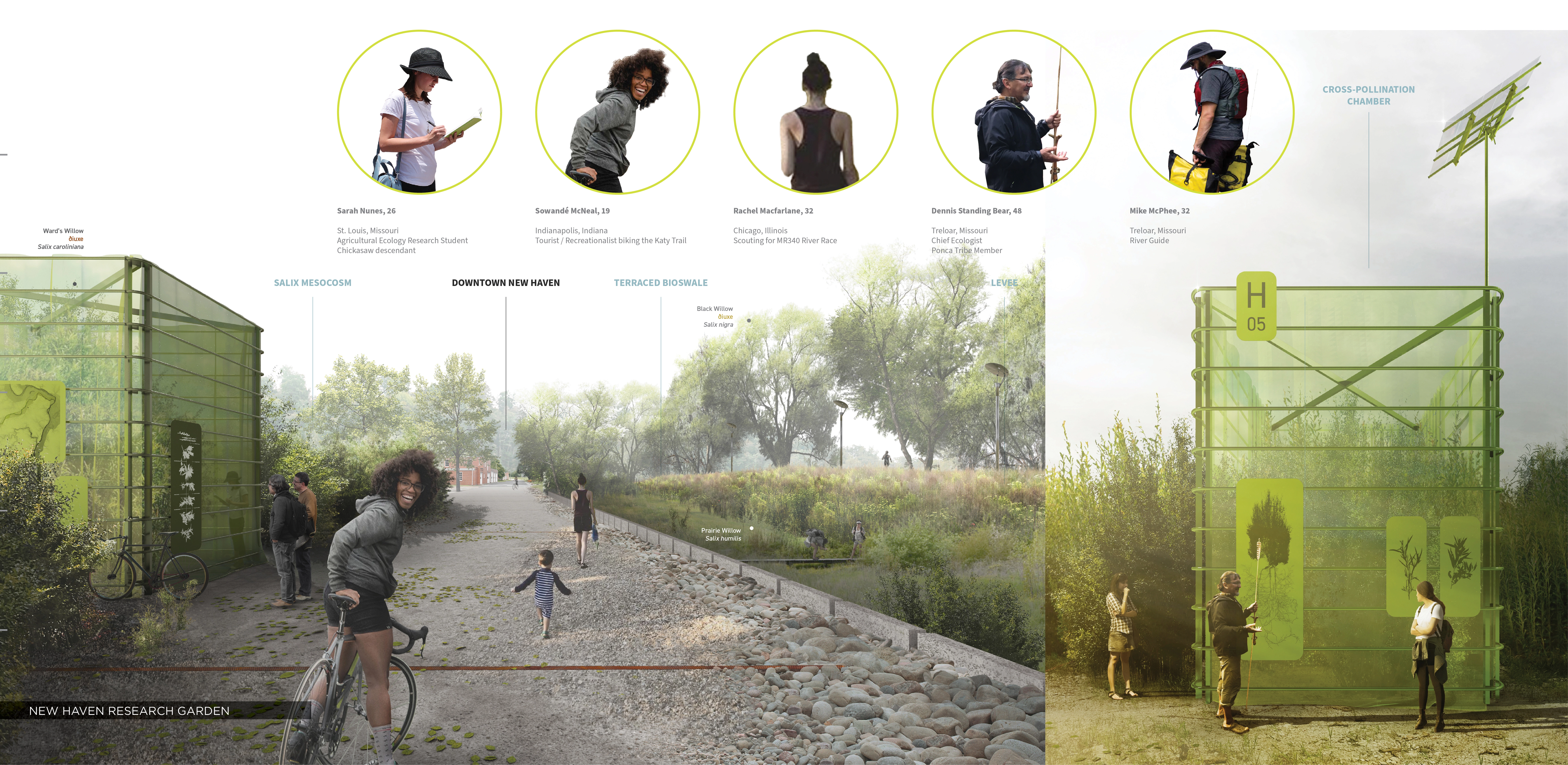 The interwoven challenges of the climate crisis and political / social divisions in the United States are not singular contiguous issues. These national crises are an assemblage of hyper-local situations stemming from rural/urban inequities, rising income inequality, and changing land-use converging within the unacknowledged context of displaced indigeneity. The effort of unraveling this set of complex social and environmental challenges must be led by proposals equally bold and empathetic, that are intimately suited to place. The Willow Resiliency Project (WRP) is a first step; an envisioned coalition of local residents, repatriated First Nations, and regional partners building an economically and environmentally sustainable land-based industry. The proposal is an appeal for Missouri’s white and shrinking rural population centers that frequently loose young people to economic opportunity elsewhere, to envision a future for their community youth that provides sustainable economic growth in conjunction with a cultural connection to landscape and the natural world that rural residents hold dear.