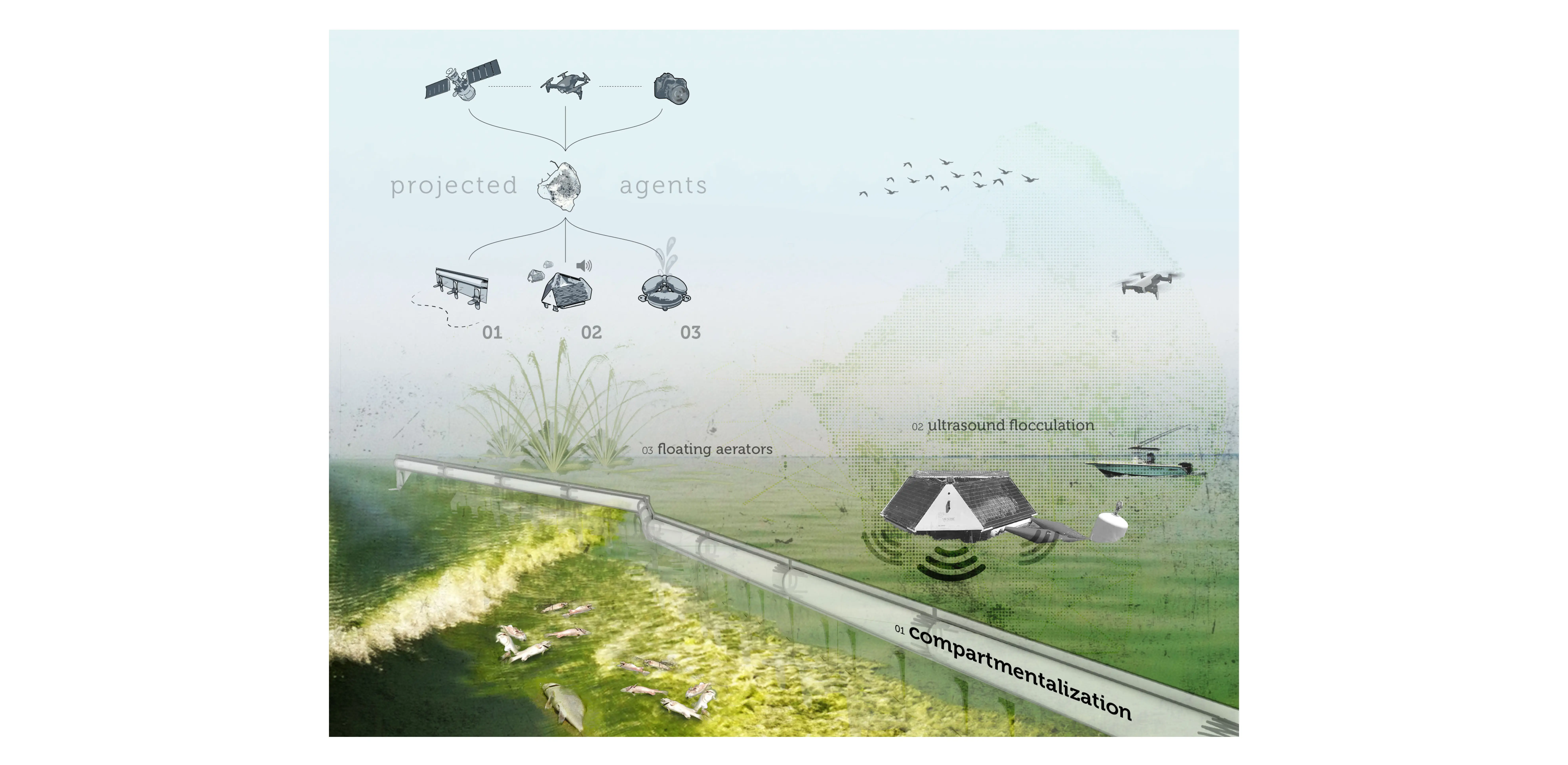 There is a long history and dense library of tools, instruments, and representational approaches to realizing and grappling with the complexities of the natural systems around us. (Anderson and Ortega, 2016) Today, with increased access to computational tools, like algorithmic aided modeling and artificial intelligence, the field of landscape architecture sees increased opportunities to weave environmental modeling tools and live data streams into the design process via responsive modeling. (Cantrell et al., 2017) Algae as Agents exemplifies how landscape architects may engage more complex landscape management issues through the responsive model approach.