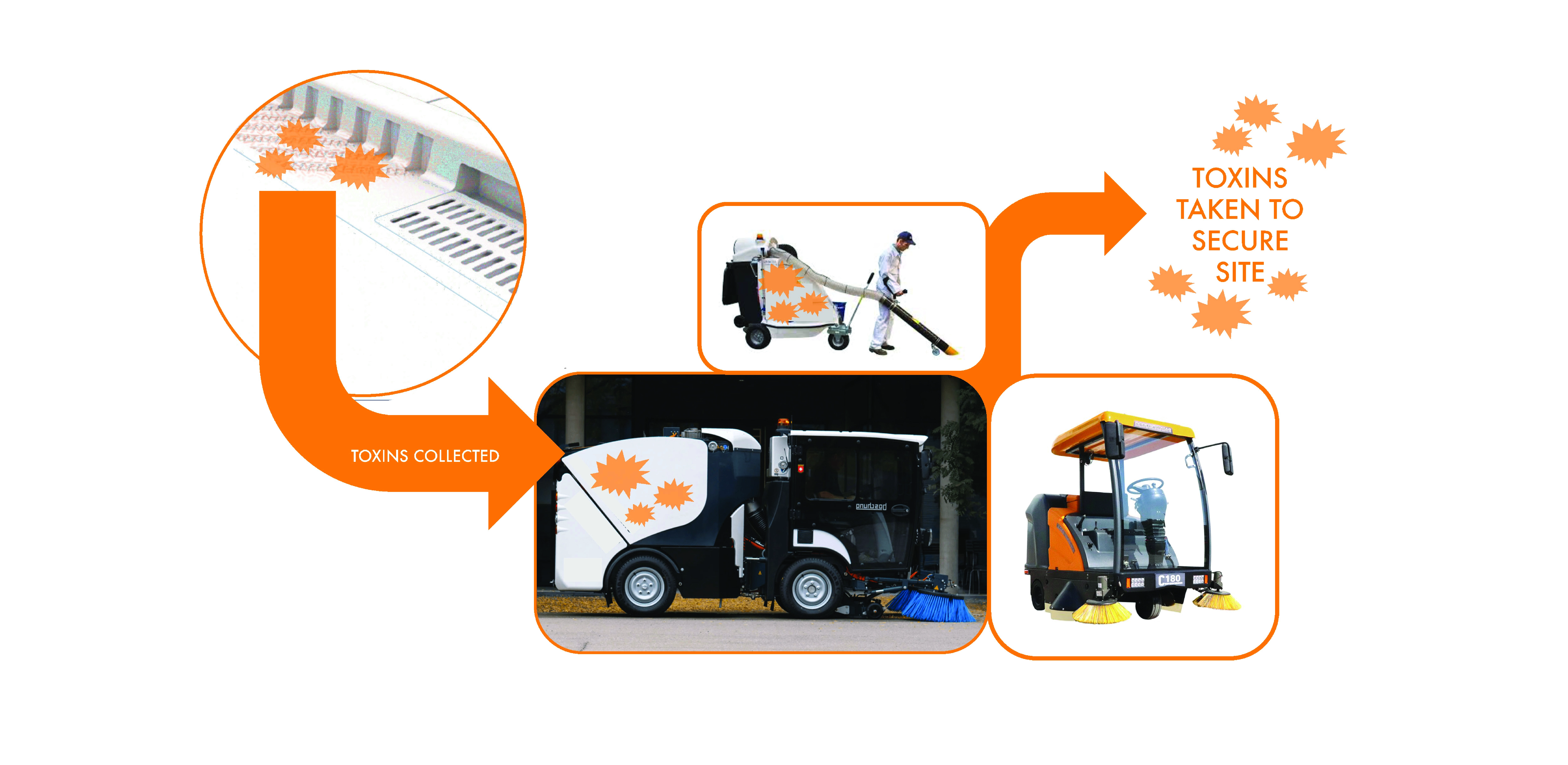 BACKGROUND A curb is a simple but ubiquitous thing. San Francisco, for instance, has approximately 275,000 curbside parking spaces, just shy of 5 million linear feet of curb. The operation of a curb, gutter, and apron is transparent; they facilitate the movement of storm-water from the road to a storm drain (and then to a sewer) or, more recently, a bioswale. However, this straightforward gesture carries more than only water. First flush toxins and sediment accumulation on the road and during storm events are transported with the water along the gutter at the curbs base. Stormwater runoff transports pollutants including sediment, nutrients from lawn fertilizers, bacteria, pesticides, metals, and petroleum by-products often discharging to waterways, often without treatment. Once in the waterway, similar to microplastics, removal of the pollutants is challenging. A typical curb and gutter is designed for conveyance of stormwater only, and so it does not provide any water quality benefit. Can we challenge conventional design standards, like the curb, to do more? With the widespread use of curbs, small-scale changes have the ability to have regional impacts. As we improve design standards to increase functionality, can their design communicate complex relationships that exist between our cities and the environments they impact? If we can design a better curb, one that collects pollutants before they enter the waterway, we can improve the health of our watersheds. TESTING Full-scale mock roads with custom curb and gutter designs were fabricated using EPS foam, curb profiles were made via a hot wire cutter, and designs milled via CNC router. The physical setup and materials included a 4’x8’ table with a vinyl gutter attached to one end, 4’x8’x8” stock pieces of EPS foam, two 31-gallon plastic tubs, an industrial mixer, scale, native soil, sand, sampler bottles, two Arduino microcontrollers with analog turbidity sensors, an ipad, GoPro, three laptops, and a camera. Milled and sealed foam pieces were placed on the platform with the GoPro Hero 6 and Sony a7RII suspended above them. The GoPro recorded video of the tests and the camera took still images every 10 seconds. Testing began with weighing approximately 70-80 kg of water into the 117 liter tote plastic tubs. A mixture of roughly 60-70% native soil and 30-40% sand was added to the water to simulate stormwater. The mixer dispersed the soil and sand mixture uniformly in the tub, ensuring simulated stormwater concentrations were consistent throughout the simulated storm event. A submersible pump, placed at the bottom of the tub, conveyed the water onto the surface of the model. A turbidity sensor was placed to gather data at the pumped simulated stormwater inlet. Simulated stormwater moved freely over the surface of the model during each 8-minute test. The water then flowed into a gutter where the second sensor was located and finally into the outlet tub. Outlet water in the tub was weighted as well as any remaining water in the inlet tub. During the tests grab samples were taken at the inlet and outlet at 2-minute intervals. Twenty-one curb, gutter, and apron designs were tested. Each design was tested in triplicate in succession. Sediment from each test was left on the model's surface to determine how much sediment each design could effectively hold. The three most successful designs received 1-7 rounds of additional tested storm events each with increased volumes of sediment added to determine failure modes and timing. FINDINGS Data were collected via three means. Visual data was collected with the camera, GoPro, and by the team as the tests ran. Additionally, the team could visually assess water clarity in grab sample bottles and outlet tub water. Grab samples were tested in the lab for TSS and particle size distribution. Sensor data were reviewed during the tests and further analysis was conducted to compare findings with grab sample data. Sediment was collected for each design tested. Designs with both a curb and apron modification performed better than designs including only a curb or an apron modification. National Pollution Discharge Elimination System (NPDES) stormwater permits in Ohio require an 80% reduction in total suspended solids (TSS) for stormwater management. Six of the eight combined curb and gutter designs met or exceeded 80% reduction in TSS. CONCLUSION Prototype testing of 21 designs proved redesigning curb, gutter, and apron standards can be a viable option to collect pollutants on roadways. These new designs can be used in concert with green infrastructure to reduce clogging or independently on roadways. Curbing Sediment’s small footprint can be advantageous in areas with mature trees and narrow sidewalks. Custom patterns could be developed for Business Improvement Districts or by municipalities to adapt to specific aesthetic, hydrologic, and/or other physical conditions. Regular maintenance of curb, gutter, and apron designs can be performed by street cleaning machines already in use. This proof of concept research suggests Curbing Sediment is a feasible alternative to the standard curb, gutter, and apron design. However, testing in a controlled environment has its limits. The next phase of design will include field testing. The research team has received provisional patents for the designs and is currently identifying sites and funding for prototype pilot projects. Innovations such as bioswales have proven that small site scale interventions deployed at a regional scale can improve water quality. Curbing Sediment leverages the design standard to question current design practices, can each element do more? Small-scale changes in design standards can have regional and potentially national impacts.