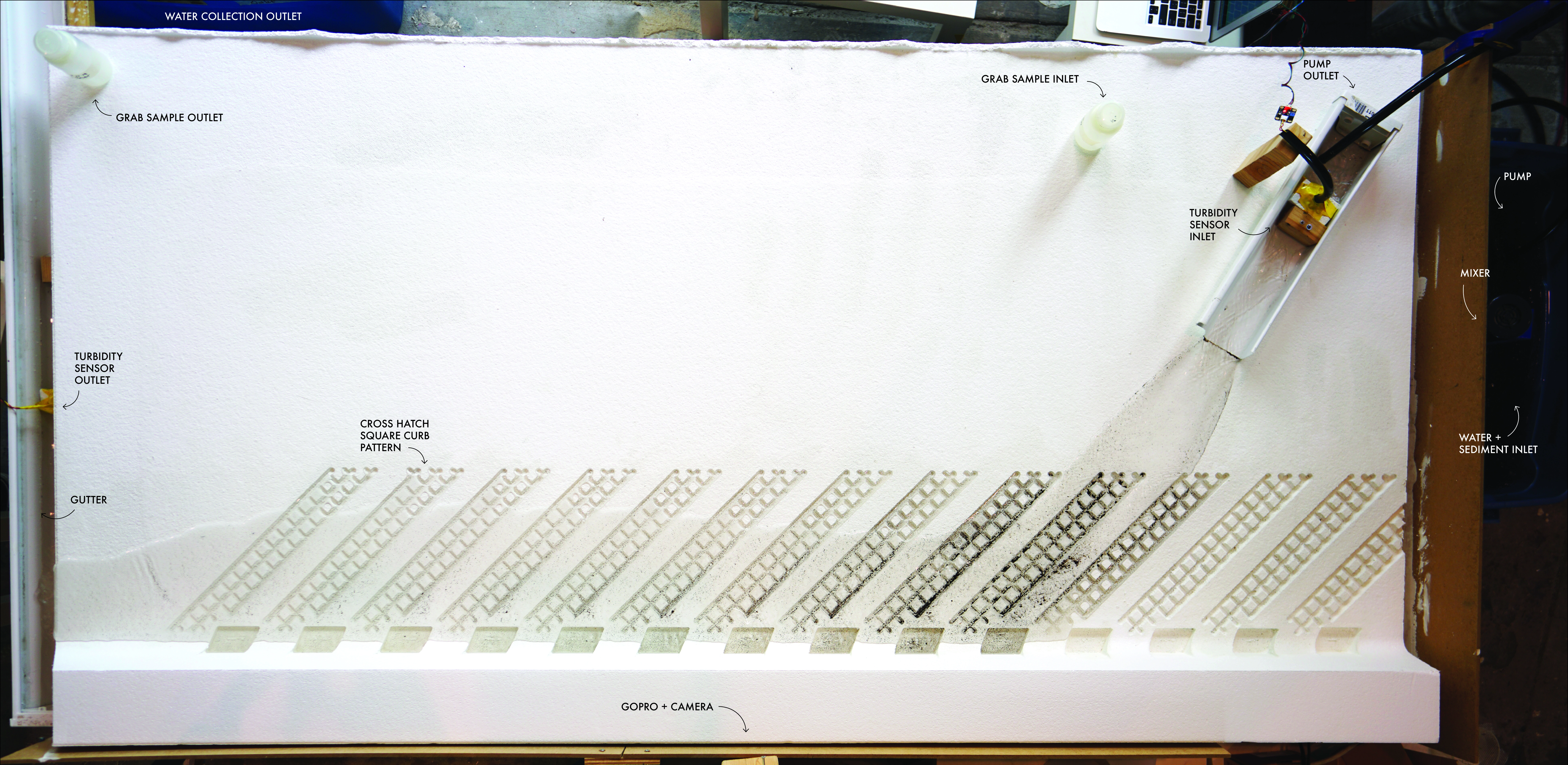 Twenty-one redesigns were tested in triplicate and proved that redesigning curb, gutter, and apron standards can be a viable option to collecting pollutants on roadways, especially when done in concert with green infrastructure. The jury noted that “there are many places where landscape design offers new ways to address overlooked bits of infrastructure. This is a significant contribution to materials-based research methods and could have a notable impact on cities and water quality.”