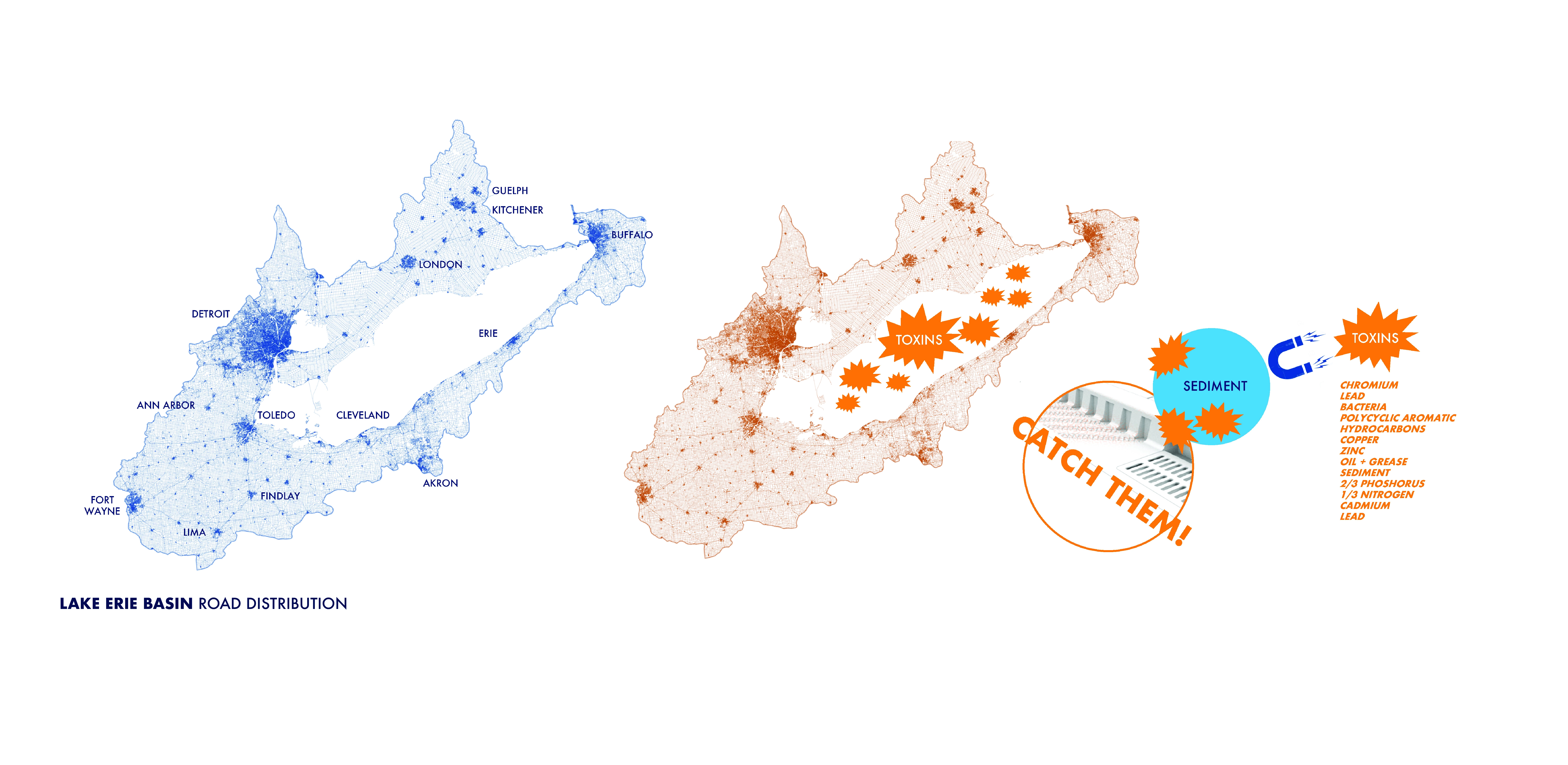 The design of a curb is straightforward. Often formed of concrete, it delineates pedestrian and vehicular space via a 6” grade change from gutter to sidewalk. The curb itself provides a conveyance of stormwater, facilitating the movement of water - and pollutants - from the street into our waterways. Pollutants such as sediment, nutrients from lawn fertilizers, bacteria, pesticides, metals, and petroleum by-products are all present in stormwater. Pollutants accumulate on the road surface and are released during storm events, carried to storm drains via a system of concrete curbs, gutters, and aprons, and deposited into waterways by sewers, often without treatment. Once pollutants enter the waterways they impact the ecosystem and affect water quality. How can discrete standards - like a curb - be leveraged to have larger systemic impacts? This research project, Curbing Sediment, challenges the design standard of the concrete curb and apron. Curbing Sediment investigates alternatives to this standard via alterations on the curb and apron face to reduce stormwater runoff velocity and collect roadway sediment before it enters waterways.