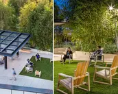 The design incorporates geometric and organic forms, native/adaptive plants, and local, sustainable building materials. Functional and sustainable green infrastructure includes a rain garden, detention ponds, and a large bioswale that overflows into a dry creek. Thoughtful placement of trees reduces street noise and the additional 333 trees sequester approximately 40,000 pounds of carbon annually. The jury called it a “truly remarkable articulation of space at numerous human scales with formal and informal geometries.”