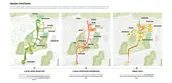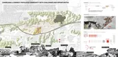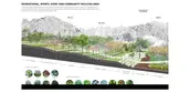 The design is also catering to the existing topography, steeper slope in the south for the new park, and gradually flattened land in the north for the relocation community. Part of the topography is modified to create a more smooth and efficient pedestrian and vehicular circulation as well as to handle water management. The existing low points, such as ponds and the foot of the hills, are embedded with water management approaches, such as community farms, rain gardens, as well as permeable surfaces, etc. Planting strategy with local vegetation, ranging from large green canopy to backyard plants, not only help to shape a continuous compelling landscape and public realm but define a series of unique spatial sequence.