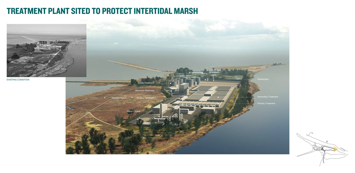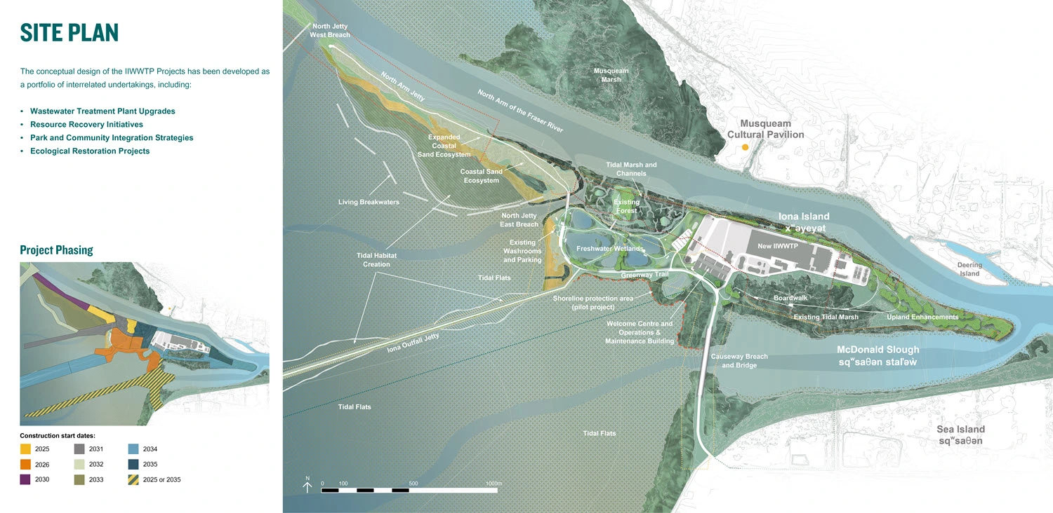 The Iona Island Wastewater Treatment Plant (IIWWTP) and Regional Park Projects collectively represent the largest capital works project ever undertaken by Metro Vancouver. Driven by the need to upgrade the existing WWTP to meet federal regulations, the projects also offer a critical opportunity to provide significant benefits to the region. In addition to WWTP upgrades, the projects will restore dynamic estuary processes, increase the island’s resilience to climate change and expand educational and recreational offerings in the regional park. These projects are a transformative opportunity to integrate urban infrastructure with ecological restoration and climate adaptation and will create a significant, ongoing legacy for the region.