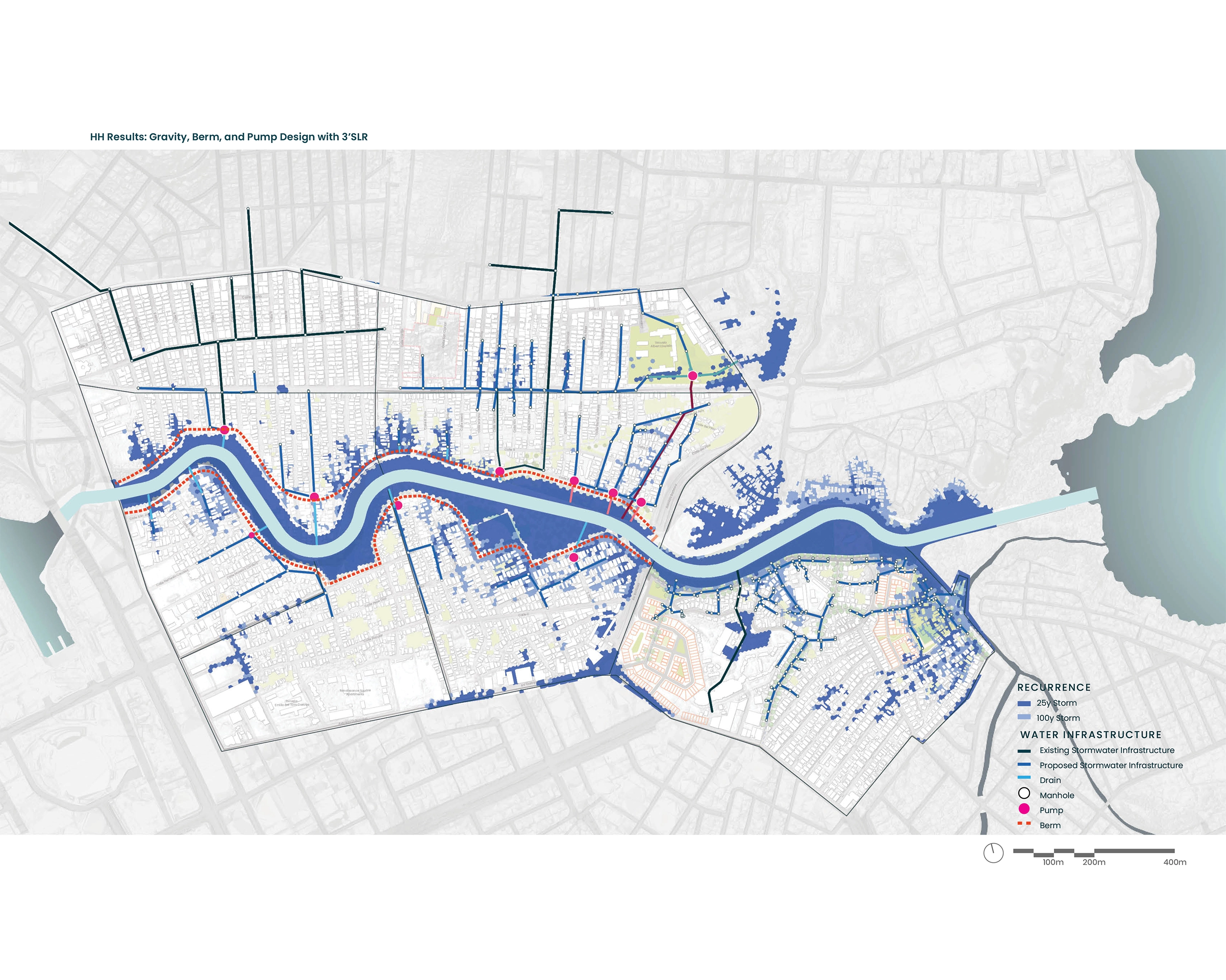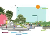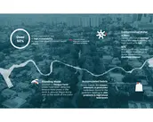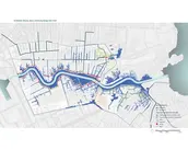The Jury stated it's a "resiliency-oriented development." This plan integrates climate mitigation and flood protection with new belts of greenspace, community connectors, housing, and power to form a possibility of multivalence. It is a plan in which specific landscape design strategies can positively impact the environment and, therefore, quality of life while promoting resilience. The analysis is thorough and addresses the intent of ecological improvements. Cultural understanding is also prevalent in the narrative and exhibits.