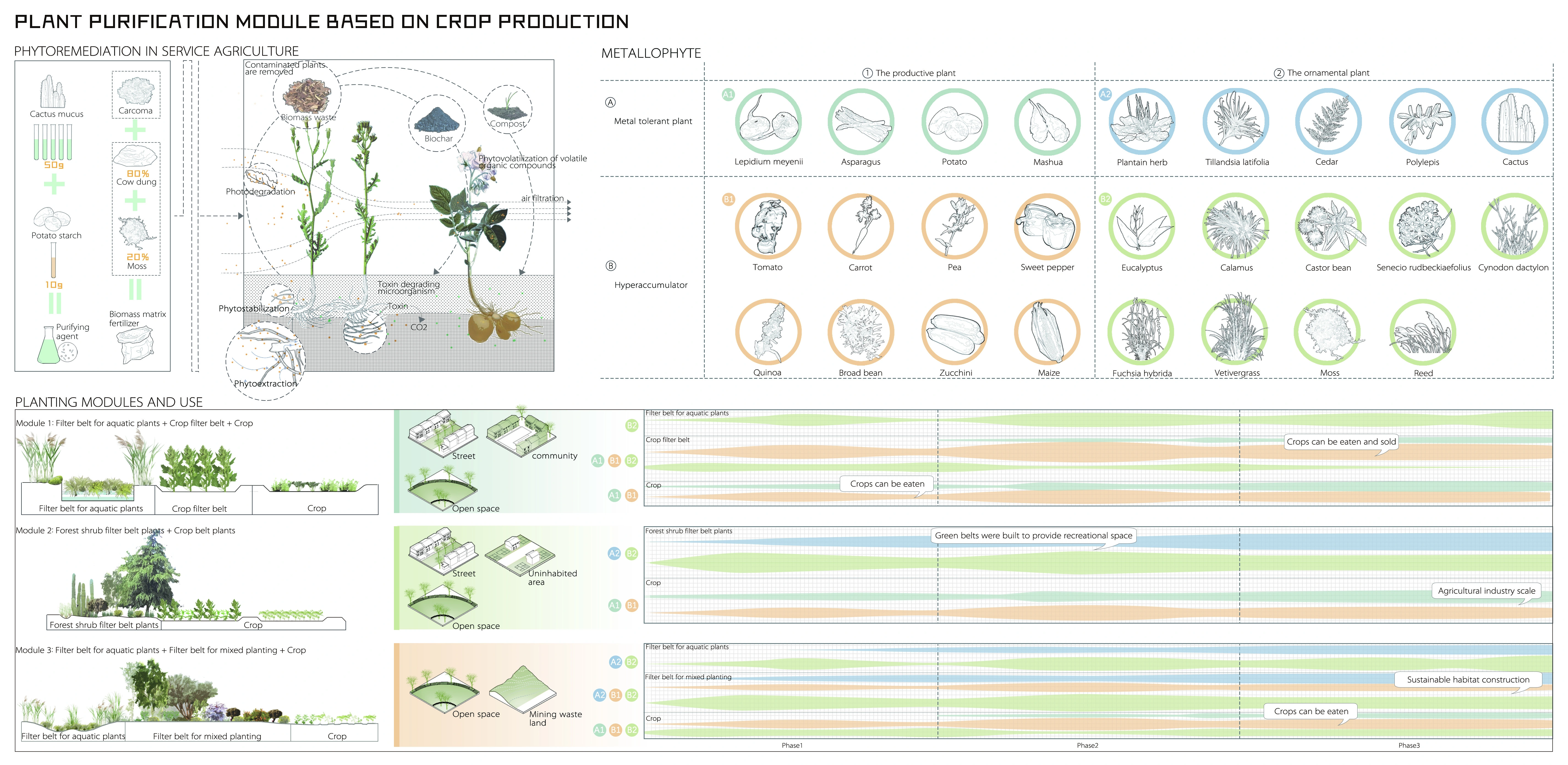 (2) Subsequent design spaces can use crop-produced plant purification modules that incorporate native tolerant species.