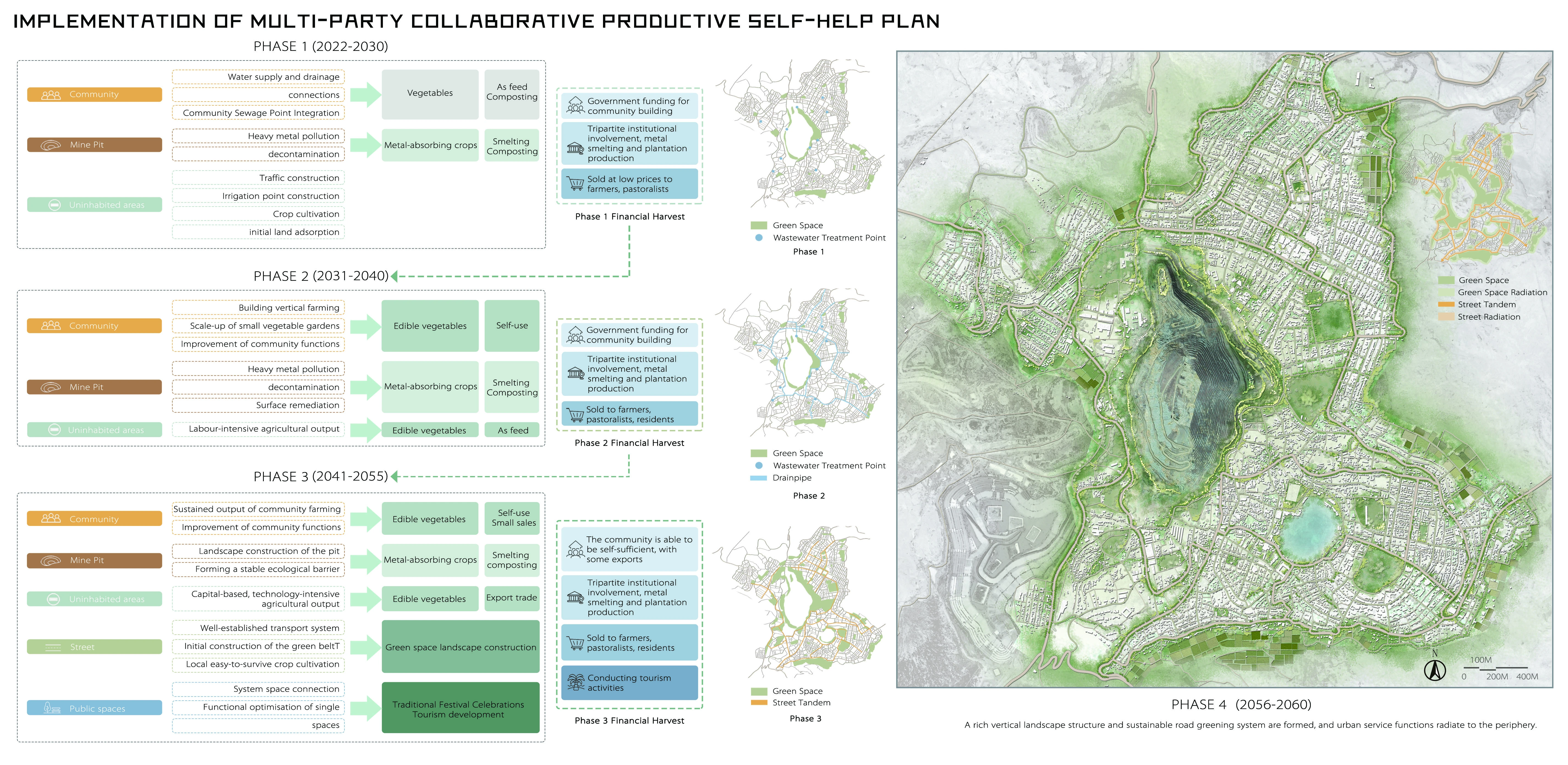 Cerro de Pasco will be rehabilitated after the 2060s, and its residents will get access to secure and healthy food supplies, clean water, higher family incomes, and agro-pastoral and mining heritage tourism. In addition to creating a sustainable self-help model for mining cities, this system of productive green space also benefits other industrial cities and resource-poor communities.