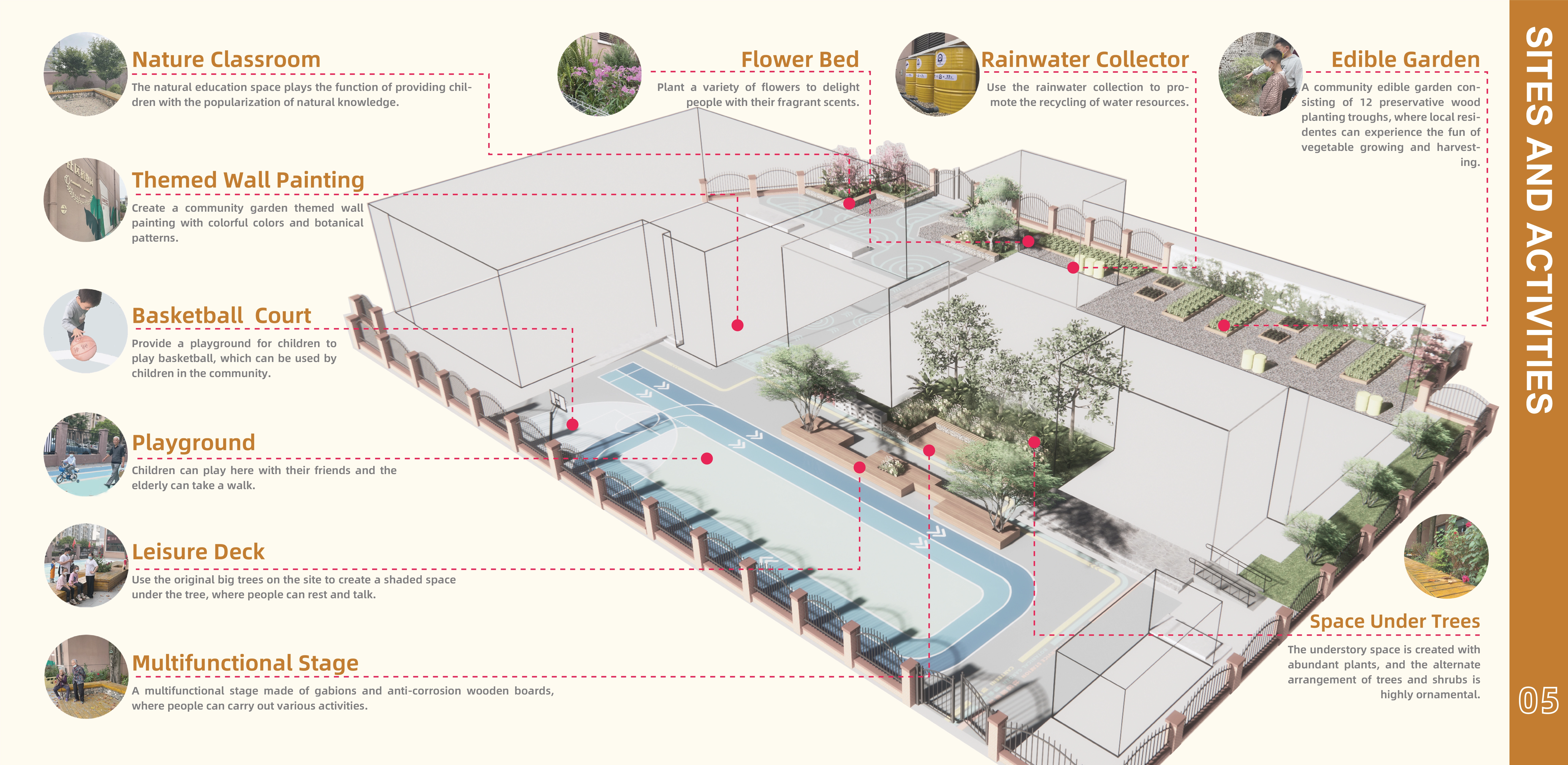 The community garden focuses on low-income groups on the urban fringe. By improving the community environment, it encourages residents to participate in community building, interact with neighbors, and develop a healthy lifestyle.