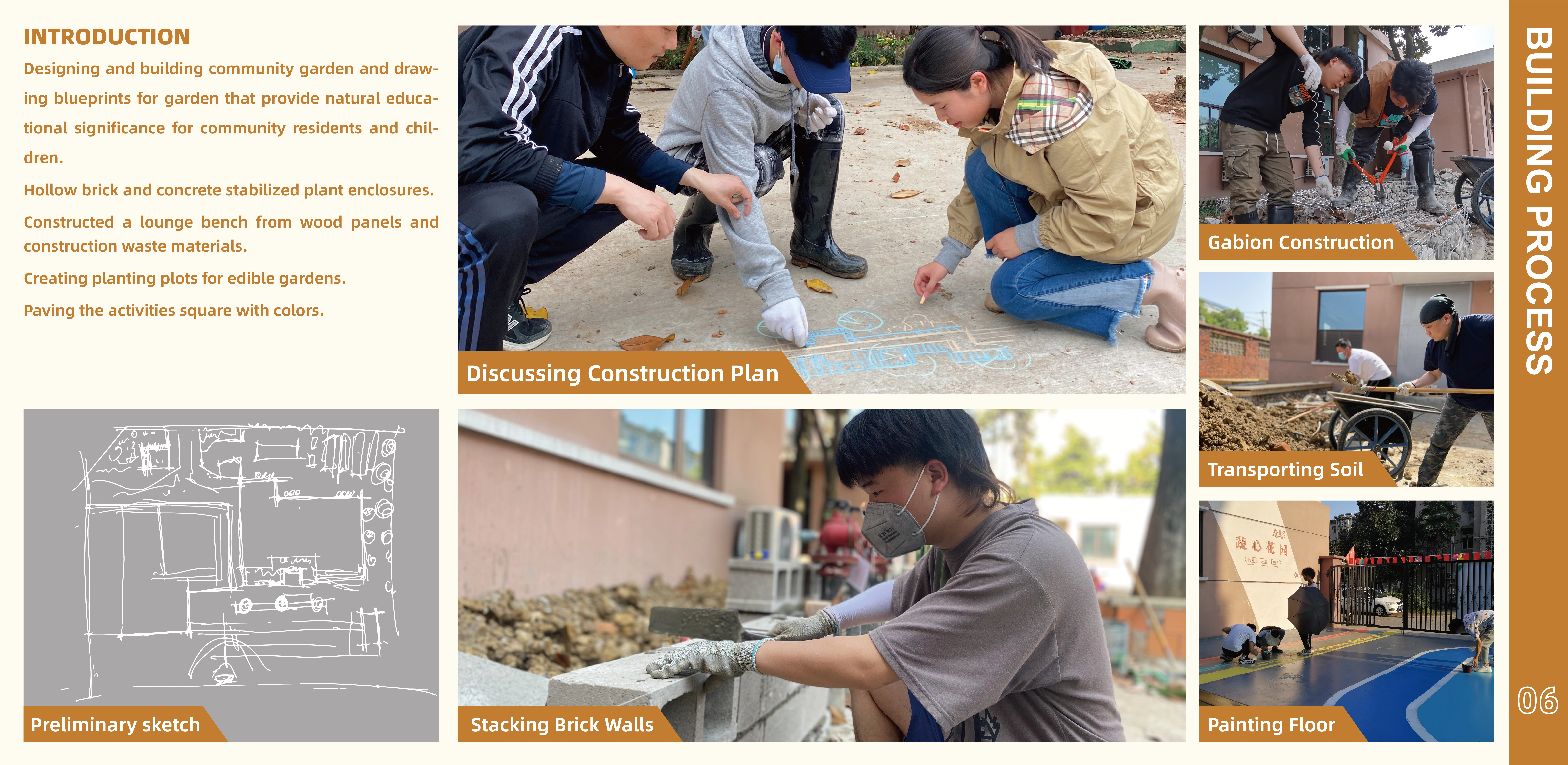 At the beginning, the team visited community service to collect land use and demographic information. After several rounds of meetings and discussions with local residents and community service workers, the design plan was finalized and the construction was completed in four weeks spanning April to May 2021.