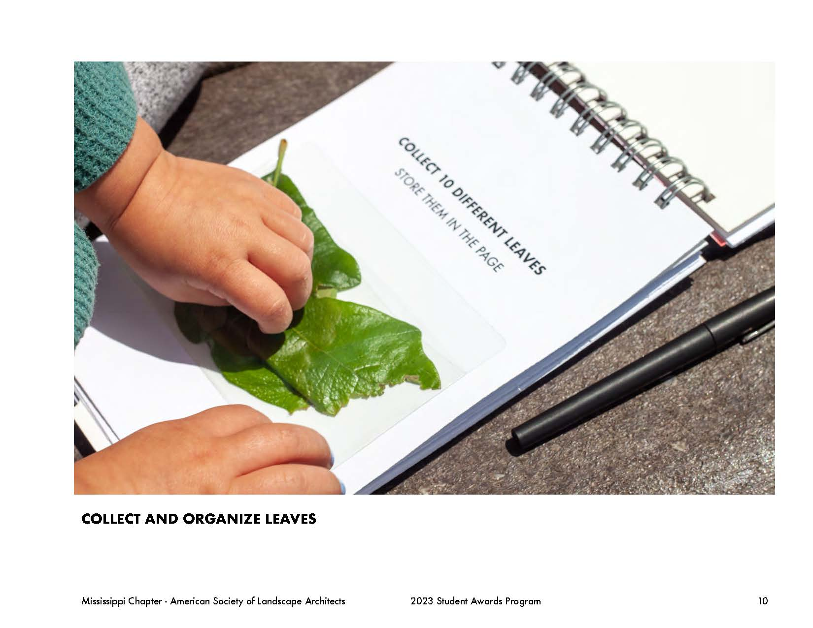 Throughout this design problem, the same question was posed: how can a designer provide the space for children and adults alike to explore new landscape typologies and understand their value? This design proposal leverages the existing site features and introduces new amenities and connections to become an artful, ecological, and interactive environment for its local community, the Wolf River Greenway system, and the greater Memphis area. The proposal integrates three unique programmatic changes to achieve this goal: experiential learning and a play pathway called the walk to learn. Playing off the walk to learn, the project showed that there was even more that could be done for community educational outreach for natural and curated landscapes within the urban context. This led to creating a field journal filled with prompts and guidelines to direct children (and adults) along the site to engage and explore the landscape. The walk to learn consists of five sections based on their programmatic functions in the masterplan: explore, learn, gather, play, and splash. The explore section encompasses the constructed wetlands and promotes people interacting with and becoming comfortable in natural landscapes and exploring the plant life and habitats that it inhabits. The learn section is a designated area for a teaching pavilion with worktables to create a space for field trip groups to convene or rest along the pathway. The gather section covers the community gardens which allow for exploration of a more manicured landscape maintained by surrounding residents. The play section caters to the more typical play. Lastly, the splash section covers the reconstructed lake edge with a low-slope gravel edge to allow for easy water access. Each section is specific to a different landscape typology to promote various learning potentials. The field journal pages in each section correlate to its section on the site plan by steering the prompts to engage users in both tactile and intellectual ways.