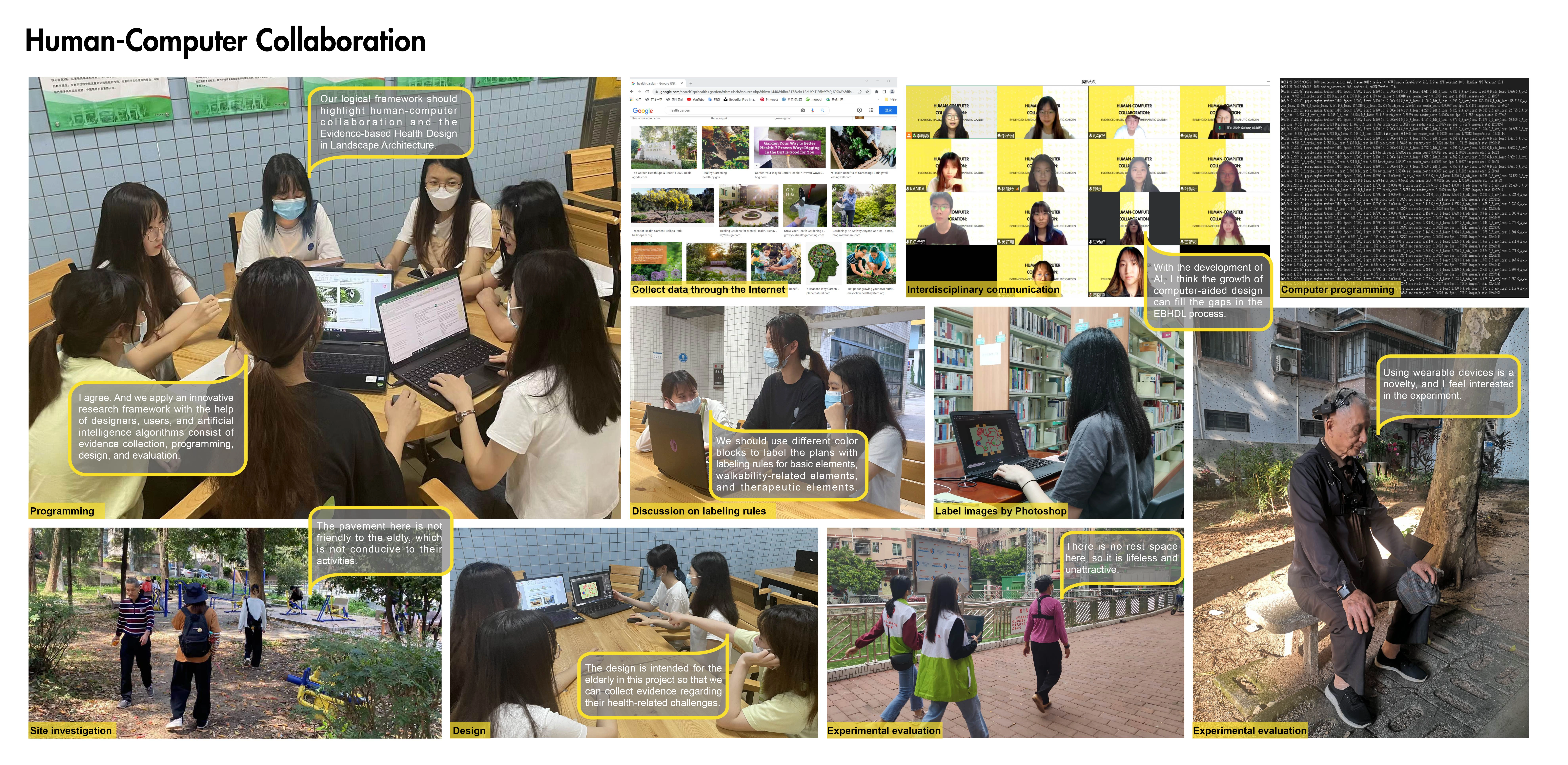 This research project has built a framework full of potential and promise, applying advanced artificial intelligence technologies to healthy aging design practices. Humans collaborate with computers based on the EBHDL process model, shifting the design and optimization process toward more objective, scientific, and rational. In summary, this research project effectively develops an interdisciplinary, systematic, and dynamic work process for health design in landscape architecture. Artificial intelligence will soon massively empower landscape architects in evidence-based design practice to be creative, dynamic, and scientific for a healthier environment.