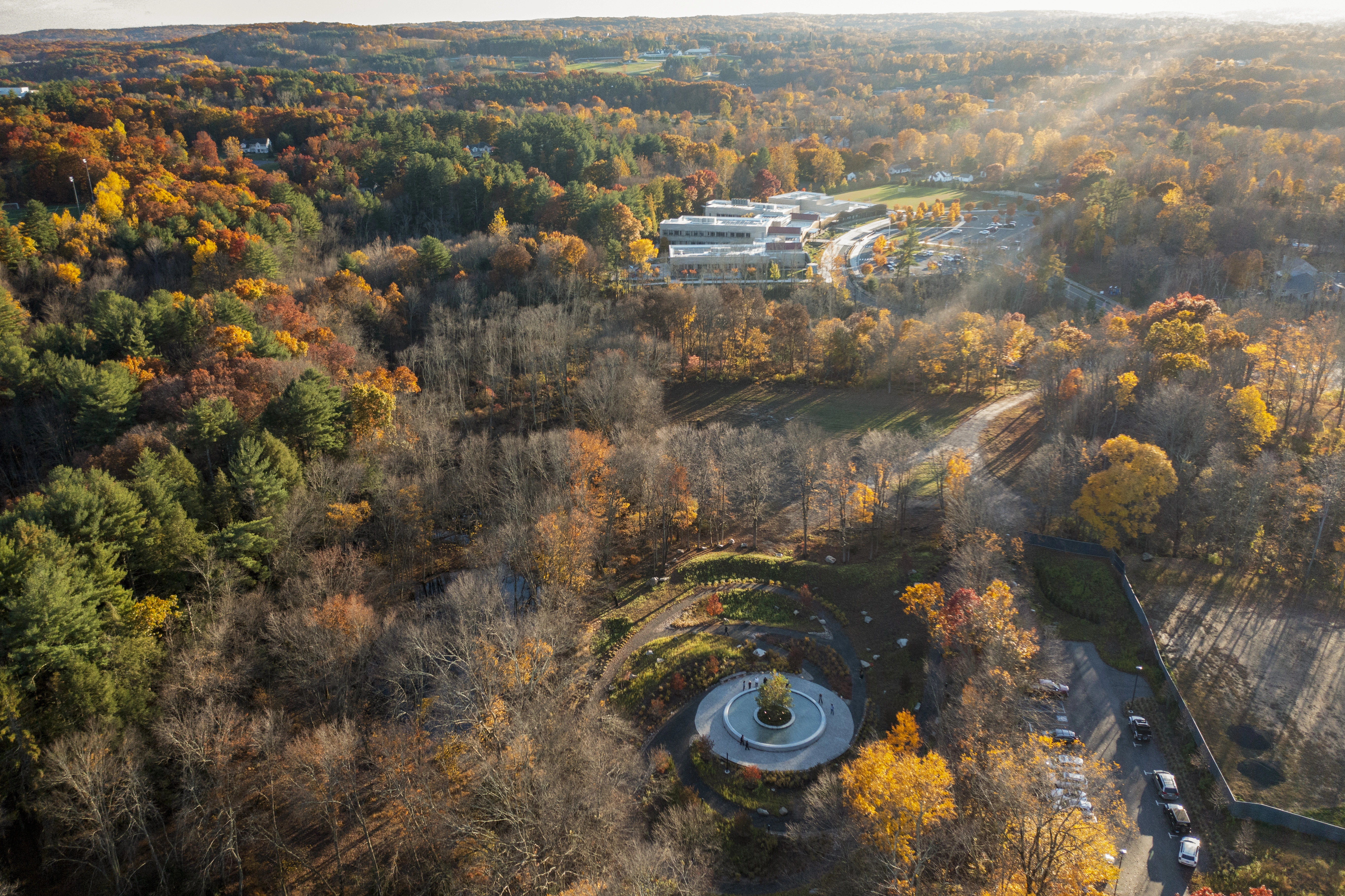 On December 14, 2012, 20 children and six educators were tragically slain at Sandy Hook Elementary School. Over the following decade, community members came together to create The Clearing, a nature-centric memorial funded by the town. Unique among contemporary memorials, its centerpiece is a young sycamore rather than a formal object—a gesture toward remembrance and healing after unimaginable trauma—situated in a granite basin with water flowing inward and surrounded by concentric paths outlining the nonlinear process of grief. With a humble budget, designers worked closely with residents and families to develop the vision, carefully woven into an existing meadow clearing surrounded by woodland, just down the road from the rebuilt school.