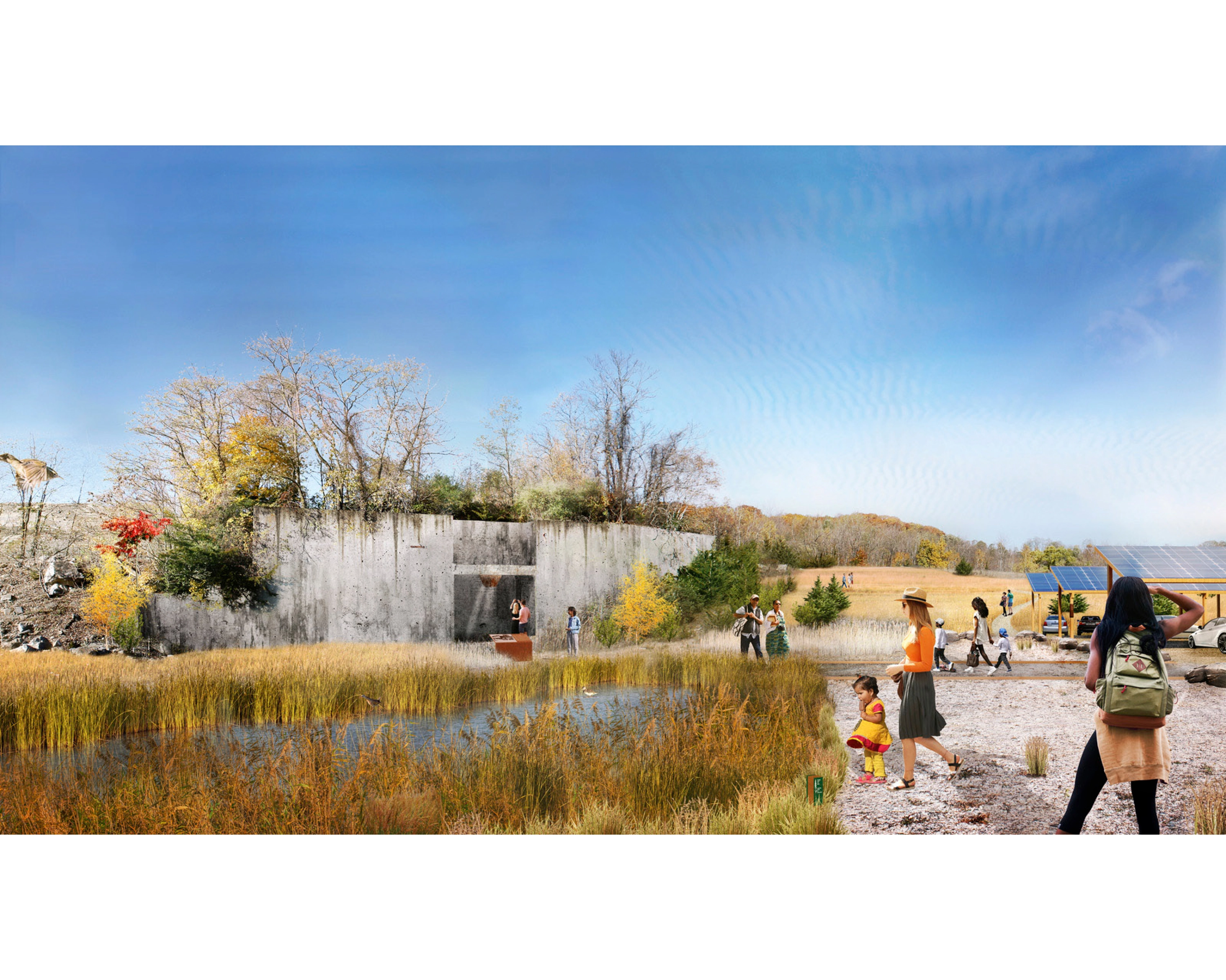 The Sojourner Truth State Park Framework Plan guides the transformation of a former extractive landscape to one of ecological regeneration and social connection through strategic cultivation of site features and establishment of inclusive access. The plan establishes a real-world model of recovery of biodiversity in post-industrial landscapes.