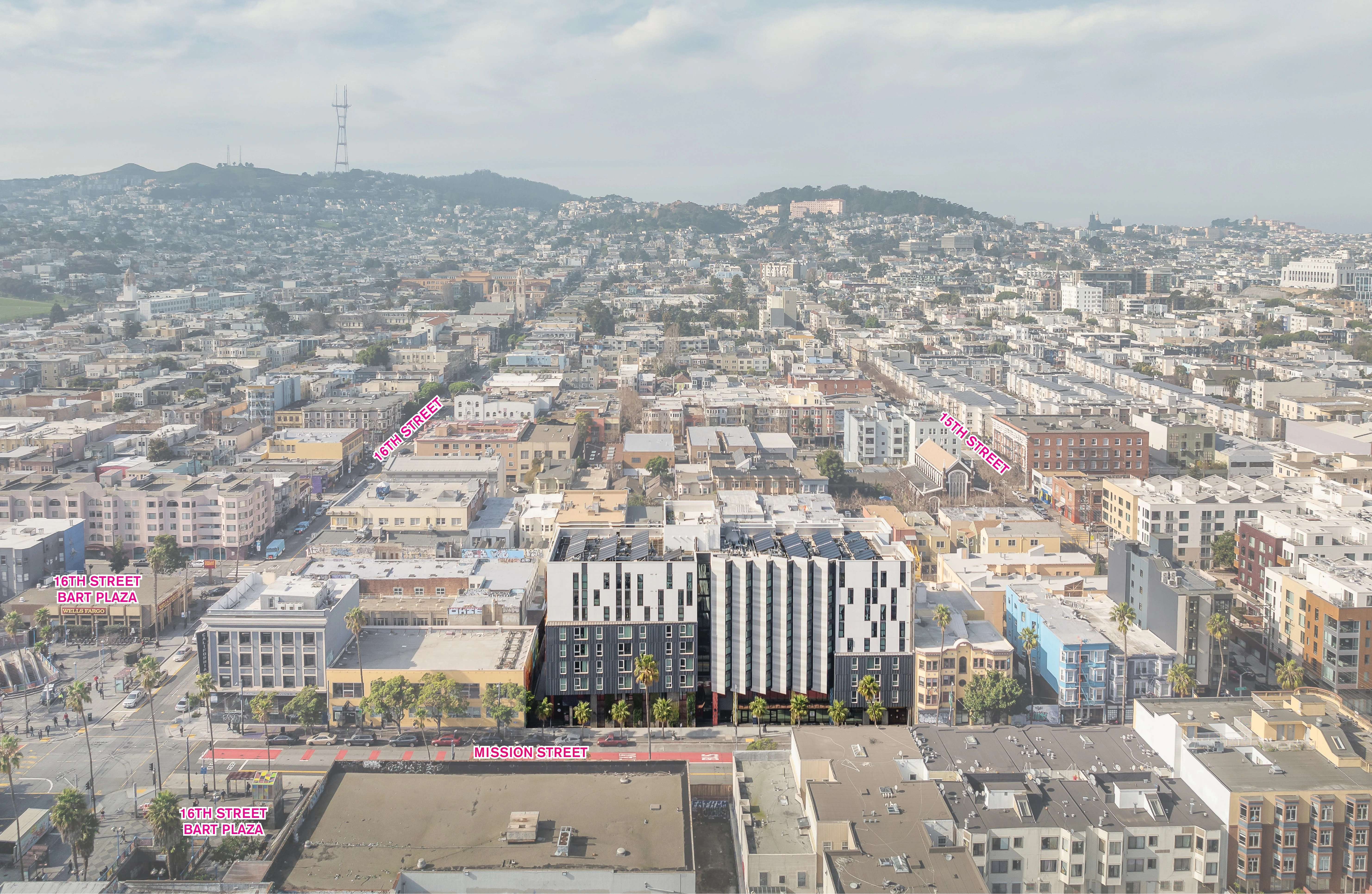 The project was developed on an urban infill site adjacent to the 16th Street BART Station on the Mission Street transit corridor. The site once housed the Phoenix Continuation High School, a San Francisco Unified School District (SFUSD) facility. In 2014, the San Francisco Mayor’s Office of Housing and Community Development (MOHCD) acquired the land and converted it to the City’s first interim-use navigation center to serve the unhoused. It was slated for permanently affordable housing the following year. Named after the phoenix, a mythical bird that symbolizes rebirth, La Fénix represents the City and community’s dedication to supporting vulnerable residents, drawing inspiration from the Pan-Latino cultural landscape of the Mission District.