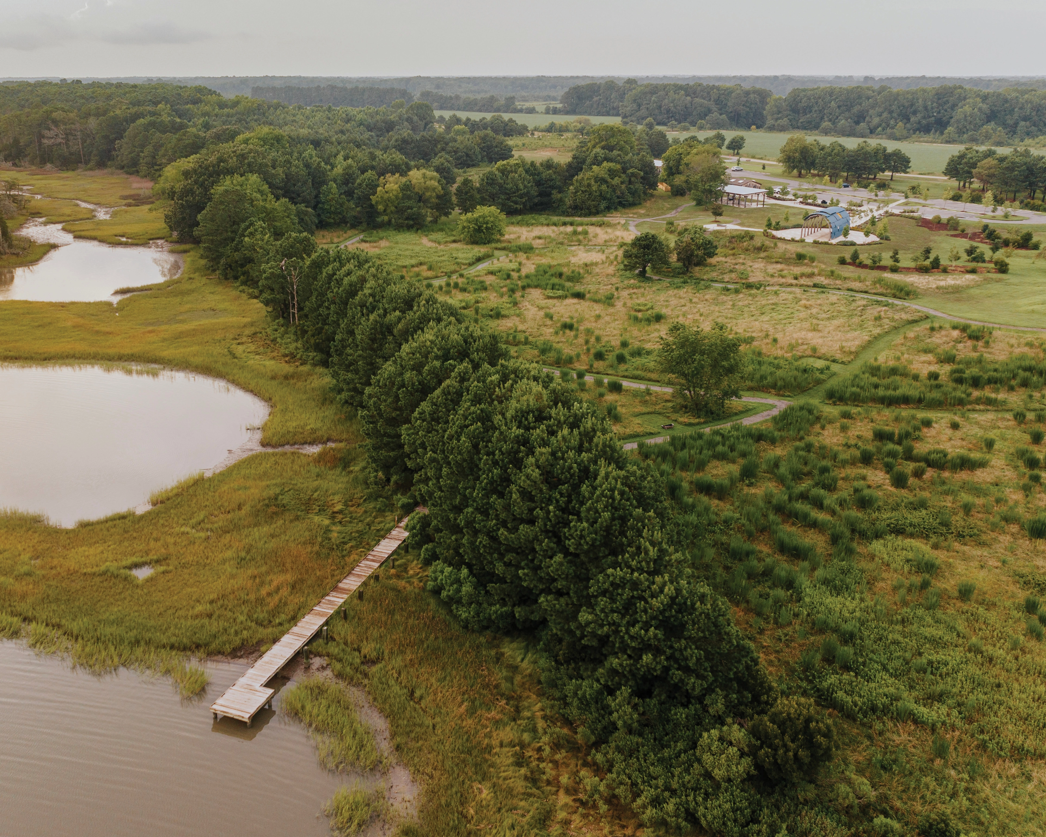The landscape architect designed and oversaw construction for Machicomoco, a new state park in Gloucester County, Virginia. Machicomoco is richly layered in cultural and ecological history, located on a peninsula with multiple kinds of quintessential Virginia landscapes: maritime forest, marsh, uplands, wetlands, and estuarine habitat. Throughout the master plan process, the designers explored the history of Indigenous Virginia Algonquian tribes in the region, including the factors that supported the growth of Tsenacomocah, the Algonquian nation based around the Chesapeake Bay, and the cultural significance of Werowocomoco, which is the physical and spiritual capital of the Virginia Algonquian nation.