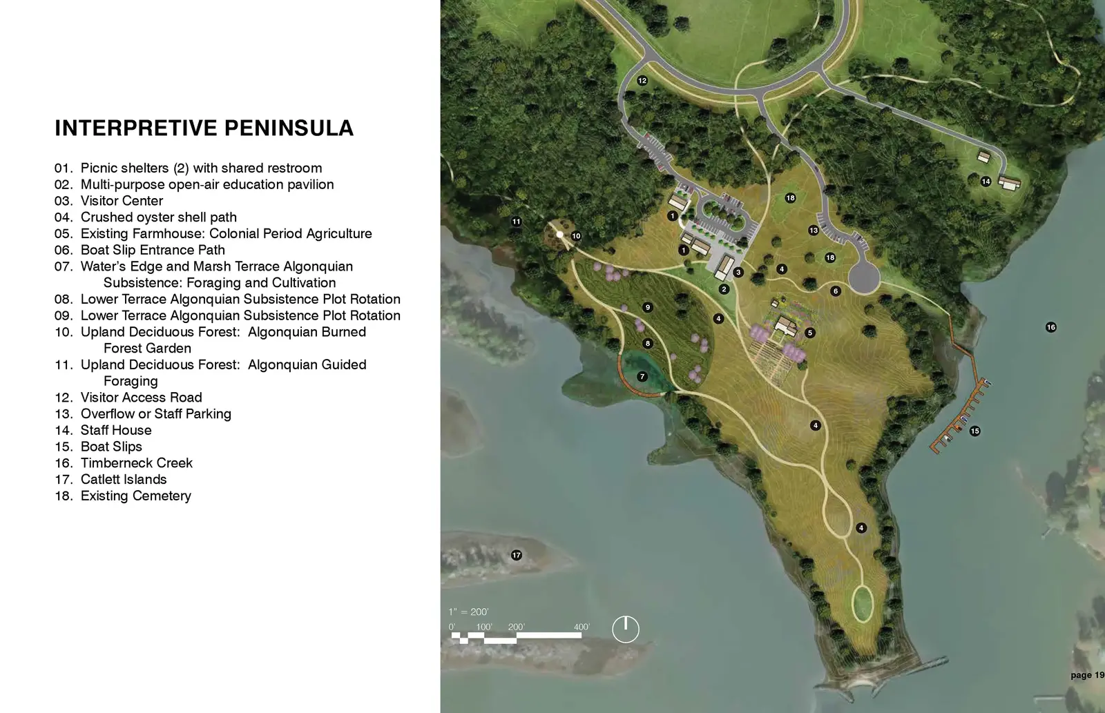 The primary goal of the design team was to honor and express the Algonquian history of the landscape while providing recreational and educational opportunities for the Algonquian tribes, surrounding communities, and park visitors. The interpretive plan creates an engaging lens for considering the breadth of the land’s cultural and ecological legacy and the landscape of Machicomoco and greater Tsenacomocah. It weaves visitor engagement and education into the site's design elements, focus areas, and strategies in ways that encourage people to absorb the essential narratives of the region's history and ecology.