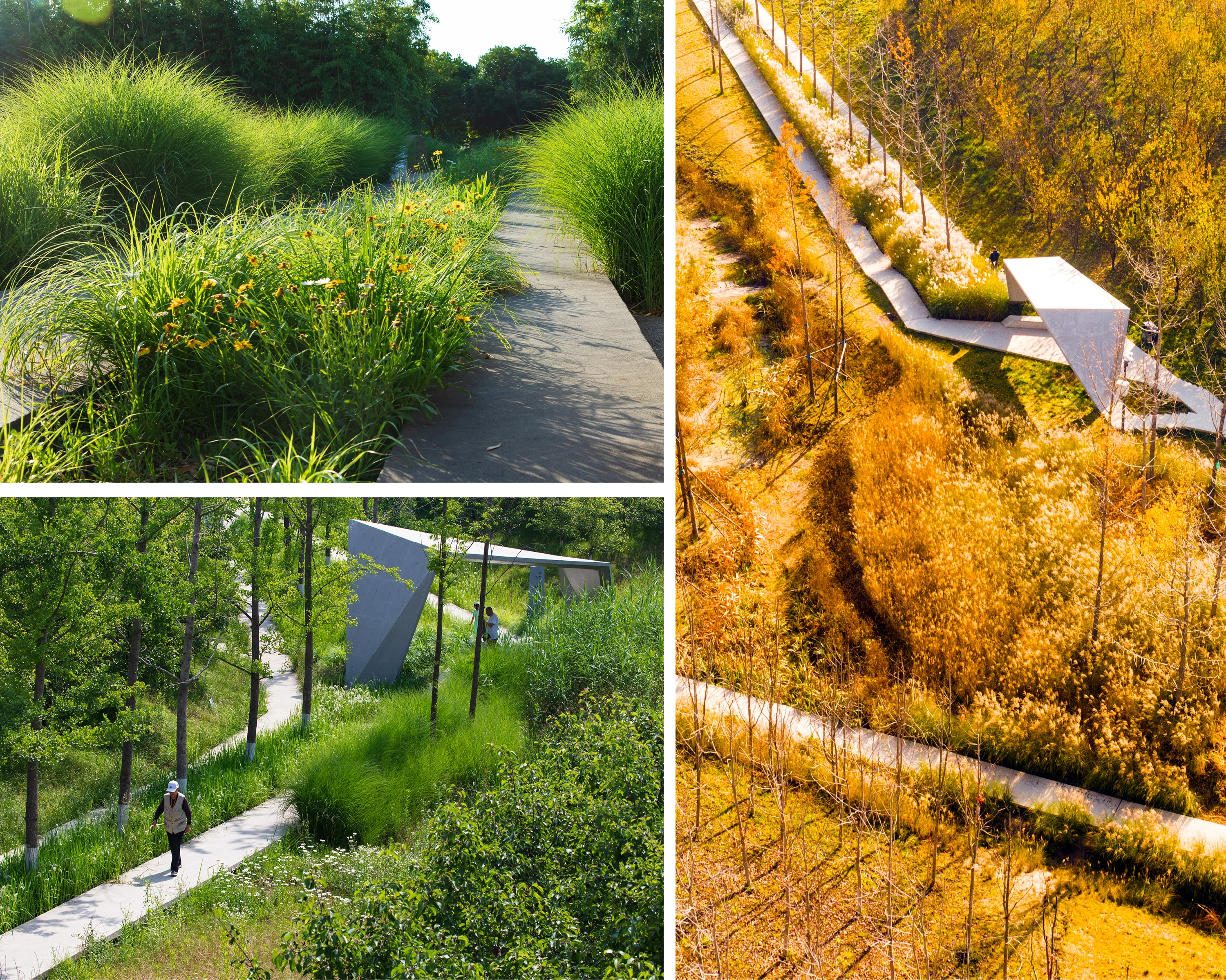 Given the large scale of the site and the short timeline mandated by the local government, several challenges emerge. These include managing the earthwork and topography, transforming the lifeless concrete drainage, and rapidly developing a low-maintenance, extensive park.