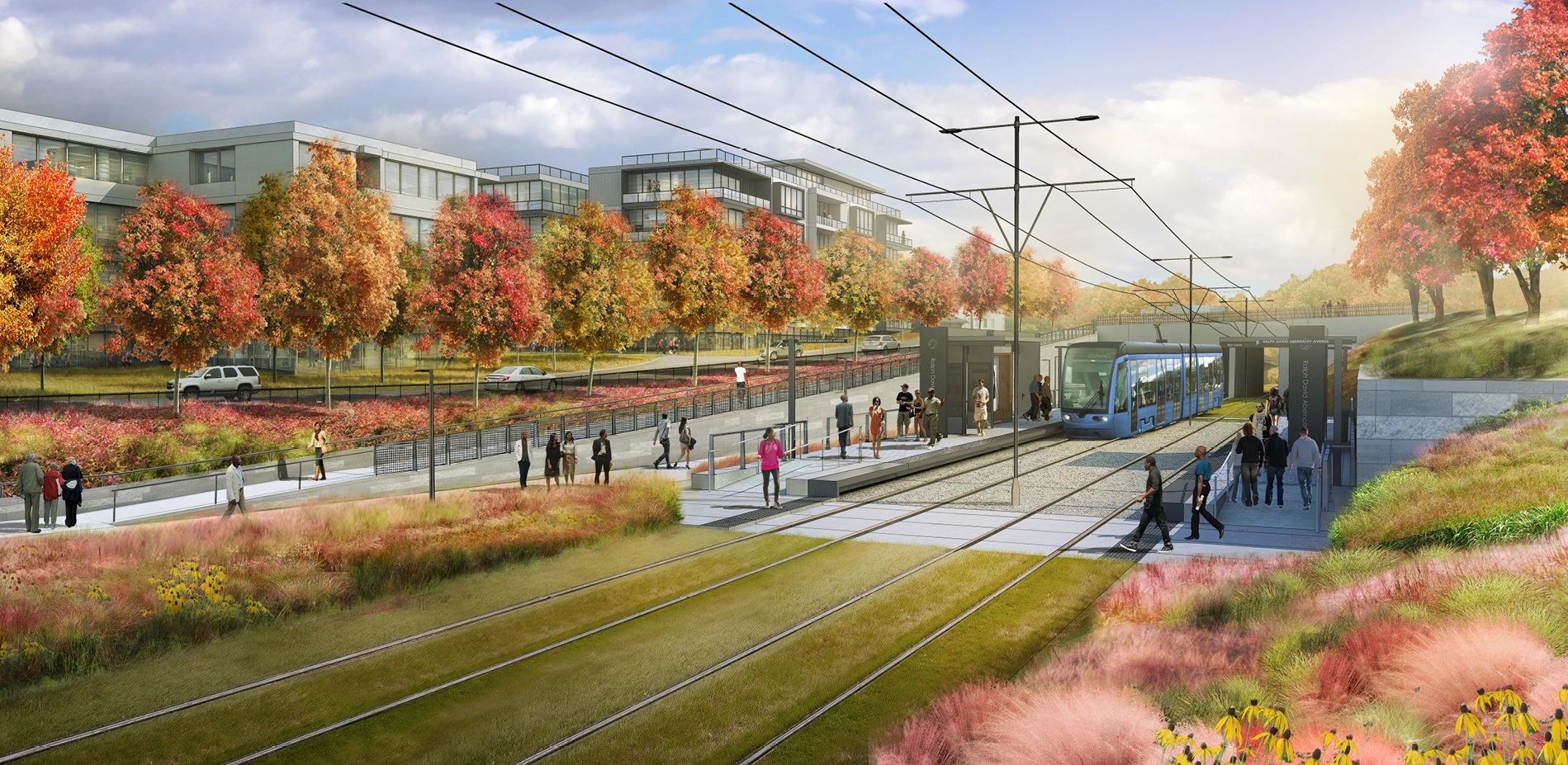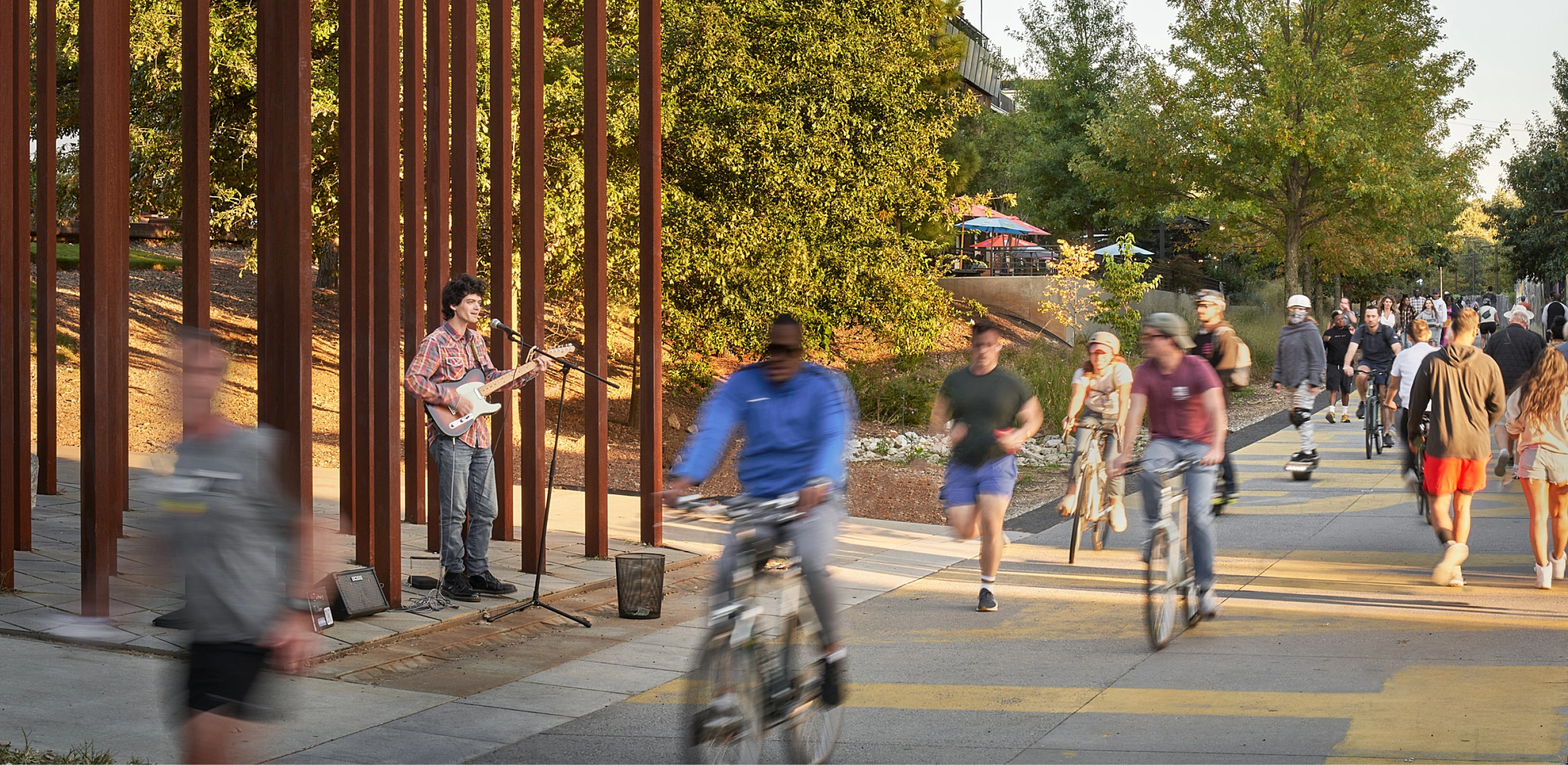 An innovative linear arboretum, consisting of both native and adapted species, helps to define these character rooms. Native Piedmont meadow grasses and wildflowers complete the composition, creating a soft, richly textured ground plane that provides wide expanses of habitat. With the planned creation of over 85 acres of native meadows, the BeltLine has a significant ecological footprint.