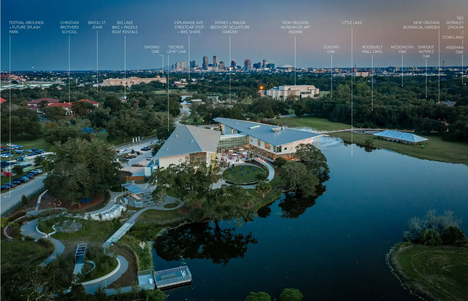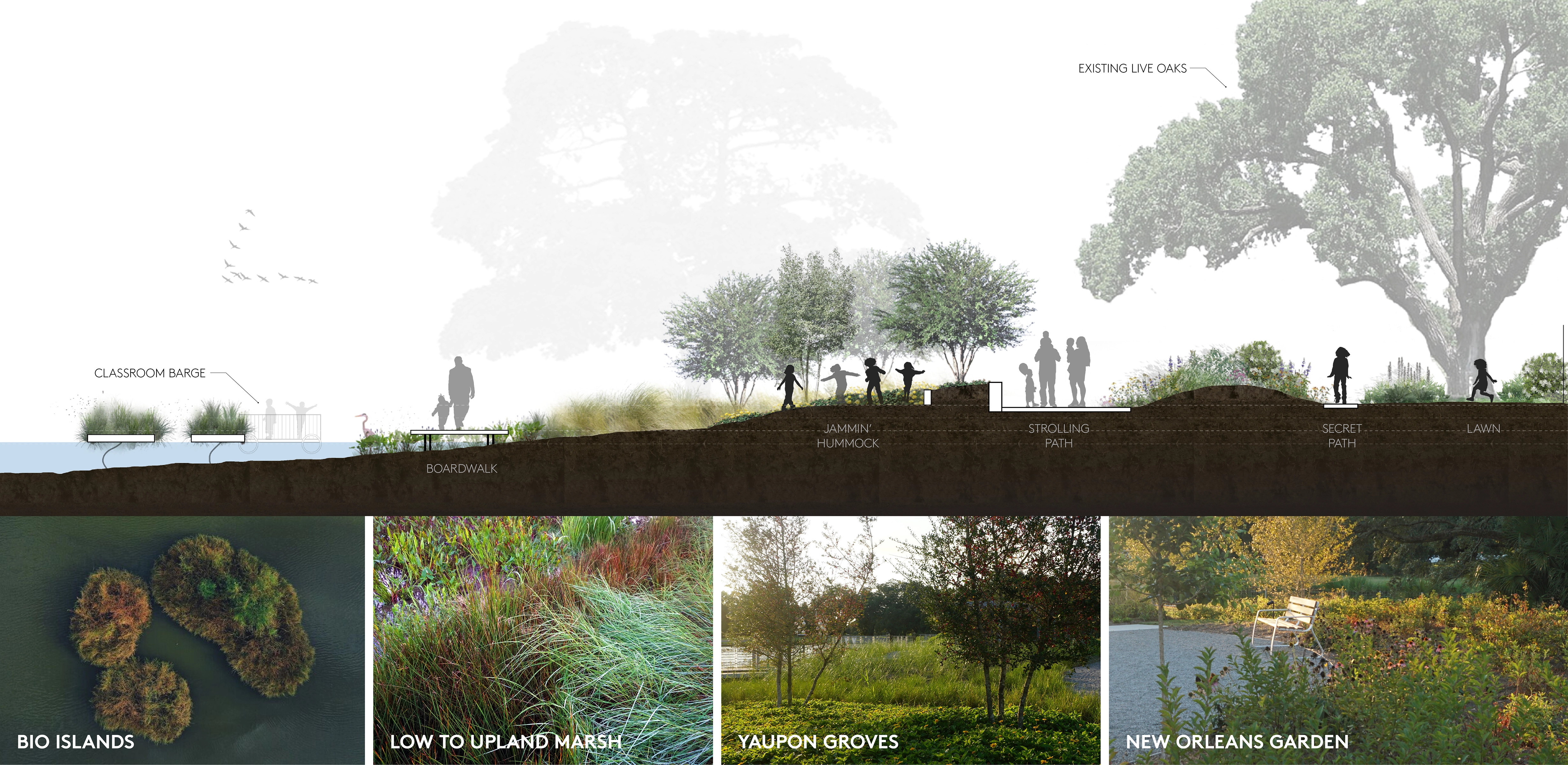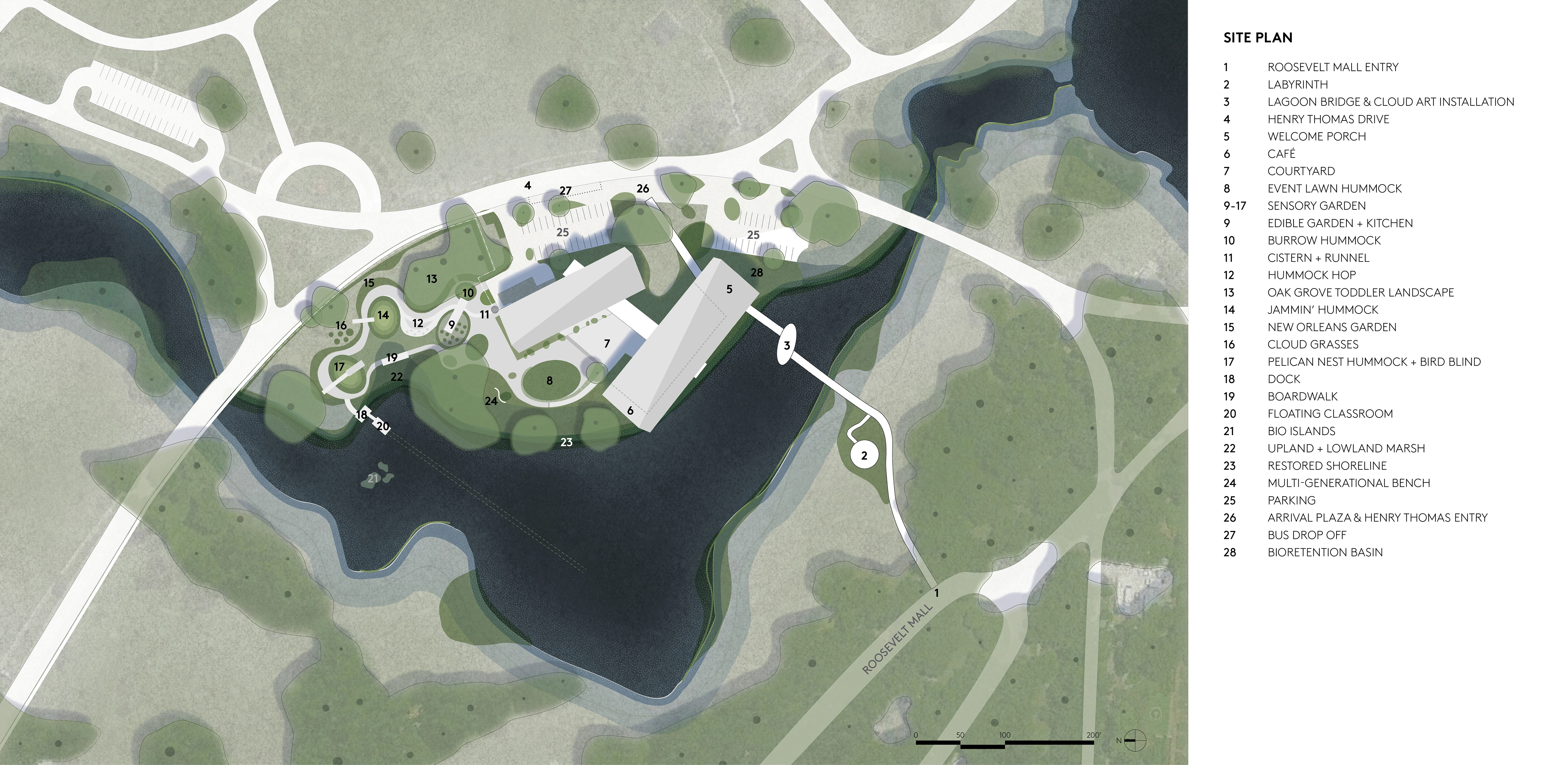 Louisiana Children’s Museum envisioned a new model for children’s museums: a place where children and families in one of the nation’s most underserved regions would have a wealth of ways to explore the artistic, sensory and natural worlds. The City Park site is part of a collection of civic institutions sitting on the edge of a lagoon teeming with wildlife and provides an ideal living classroom. The site design integrates mature live oaks, the new museum building, and experiential outdoor spaces that demonstrate solutions to some of the challenging issues facing New Orleans and the world, including coastal shoreline loss, water management, food insecurity and climate adaptation.