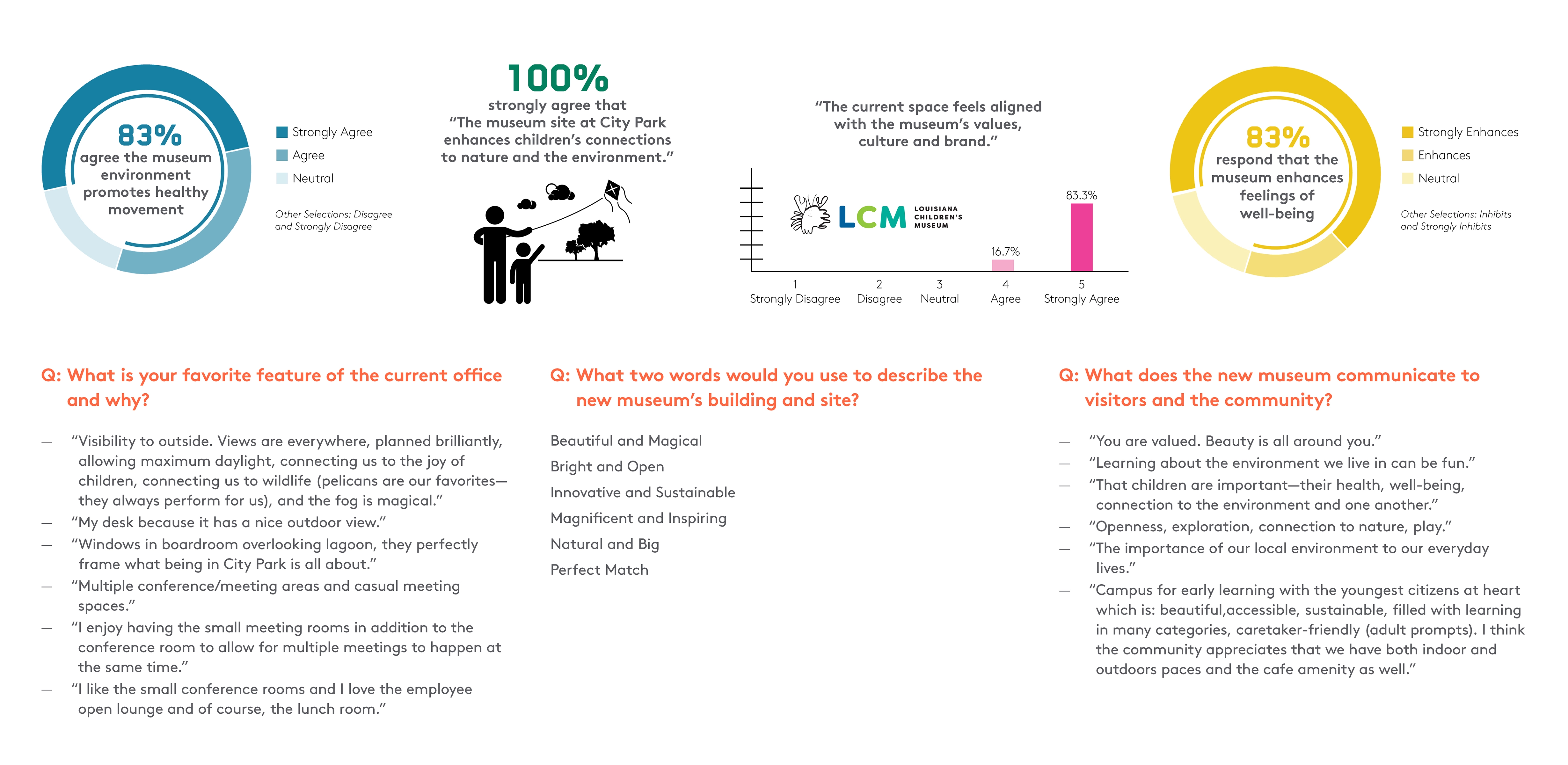 The new museum has changed the city and the state. Average monthly attendance from across the state has tripled. The Governor and the Mayor of New Orleans increased financial support for early childhood development citing the Museum’s example. And a recent regional economic group survey identified early childhood development as the top priority within the region. As part of a suite of projects, LCM’s resilient green infrastructure helped the City win a $141 million grant through the 2015 National Disaster Resilience Competition. The project’s exemplary actual sustainable performance and post-occupancy lessons earned recognition with a 2022 AIA COTE Top Ten Plus Award. The jury remarked, “This project exemplifies a resilient way of living with water in a place that is continuously challenged by its proximity to it.”