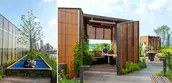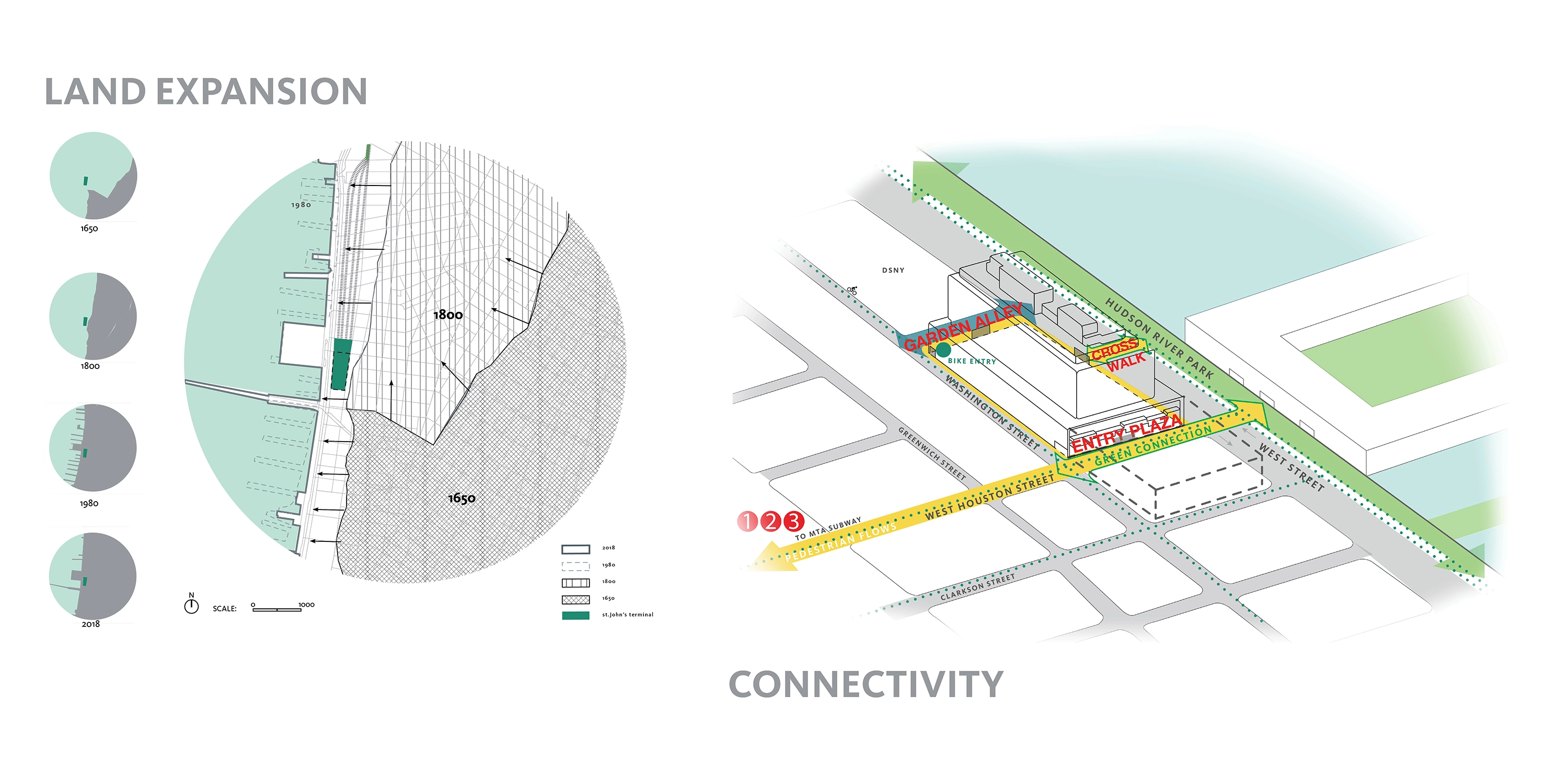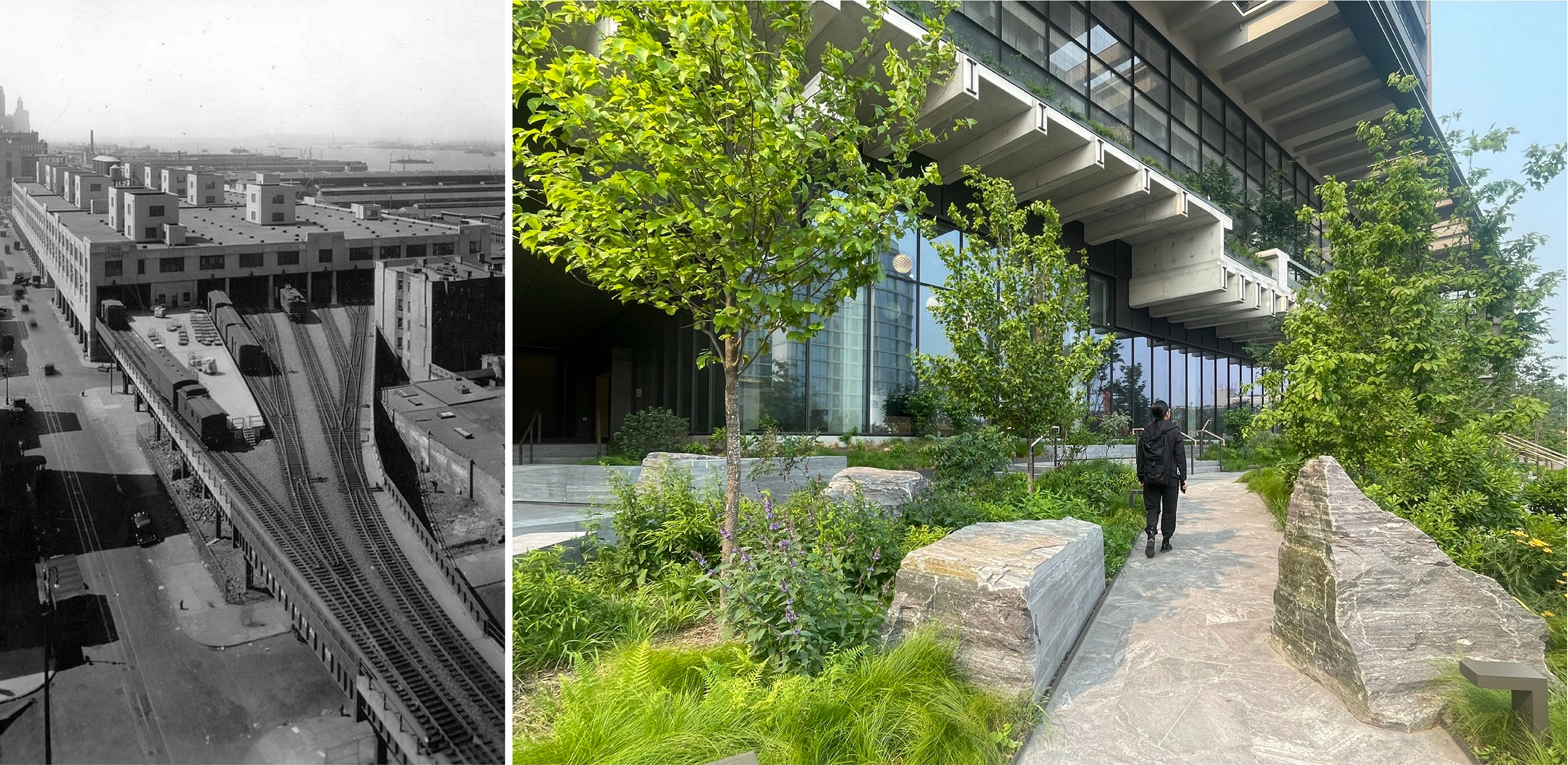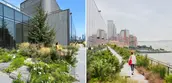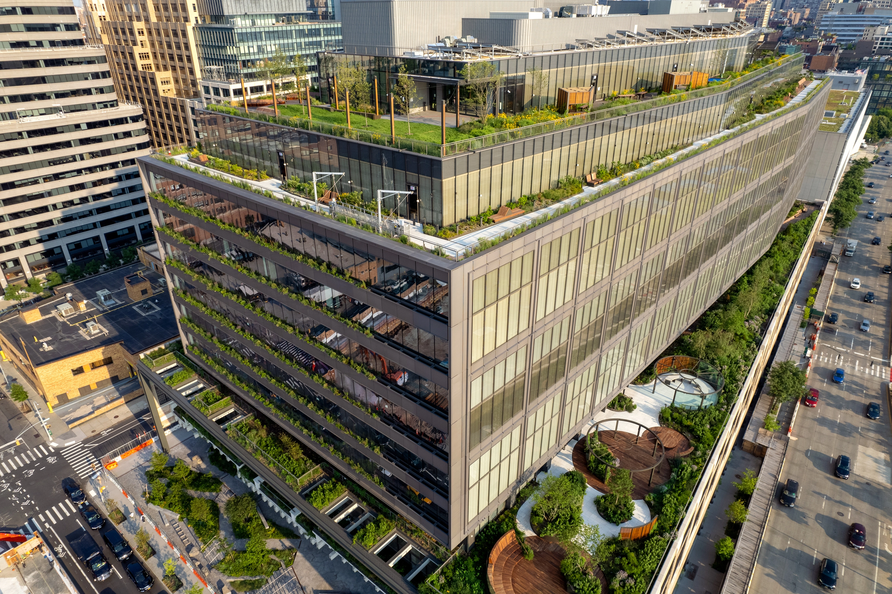 Located in Manhattan, St. John’s Terminal has been adapted into a center for tech and innovation. It is the North Amerian headquarters for GOOGLE's global business organization. The former terminus of the raised railway that has been repurposed as The High Line linear park has been skillfully engineered to support extensive landscape tgerraces, with roughly 1.5 acres planted with New York native habitat. Located on the original shoreline, the entry plaza and adjacent beautified streetscape form a new gateway to Hudson River Park. Urban design improvements include a new mid-block crosswalk connecting to the park, and a verdant street connection between Washington Street and the West Side Highway.