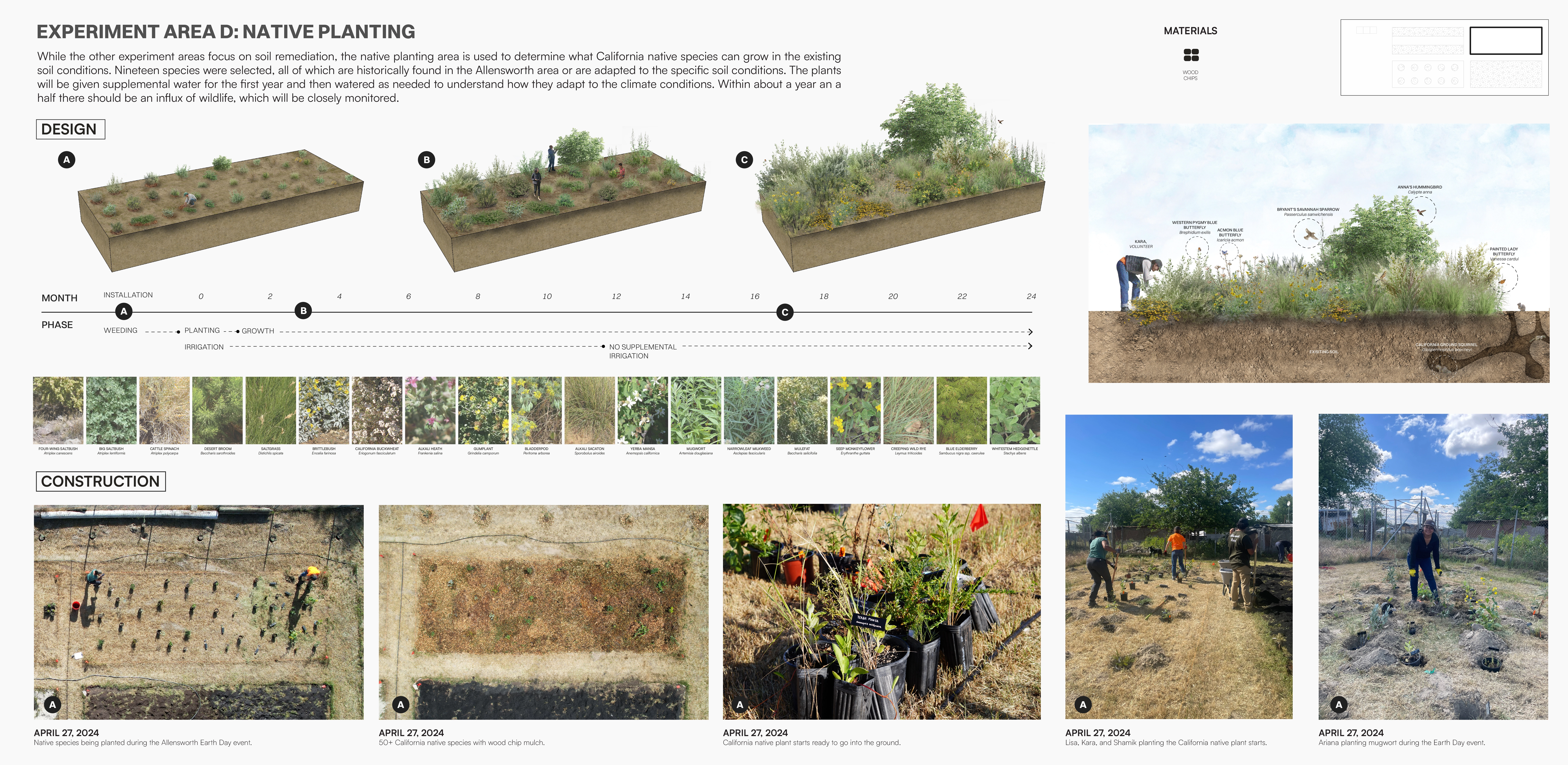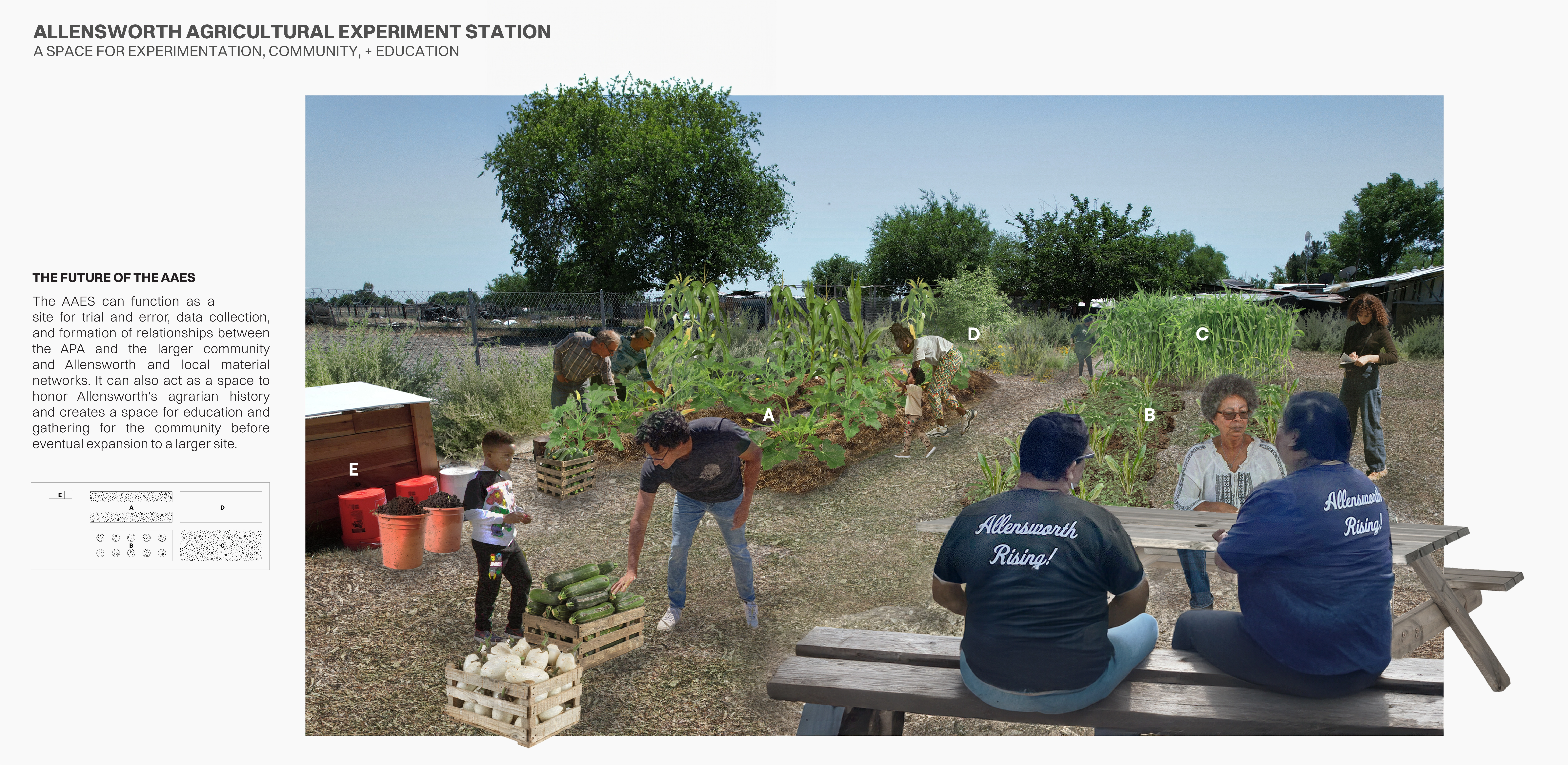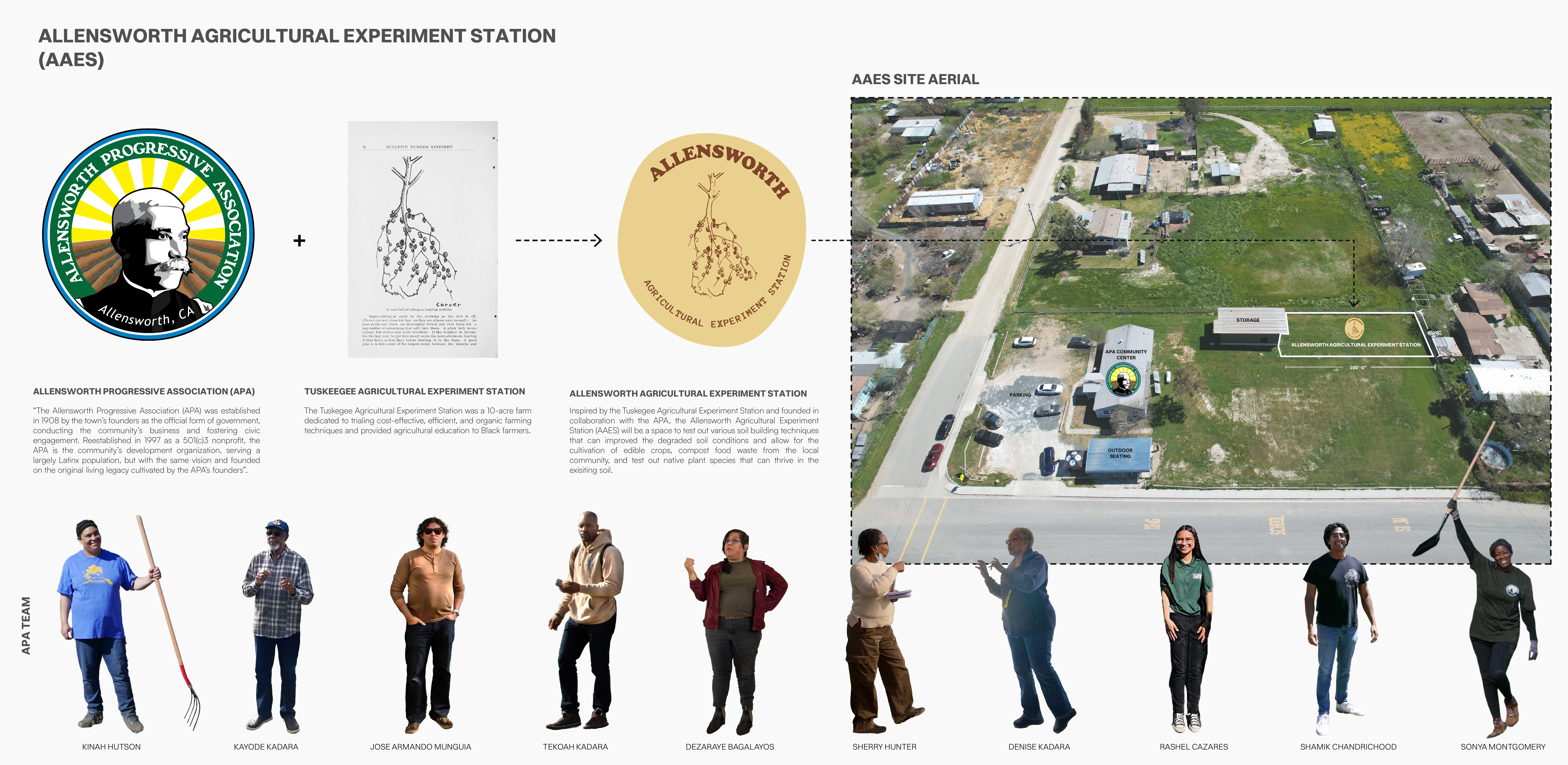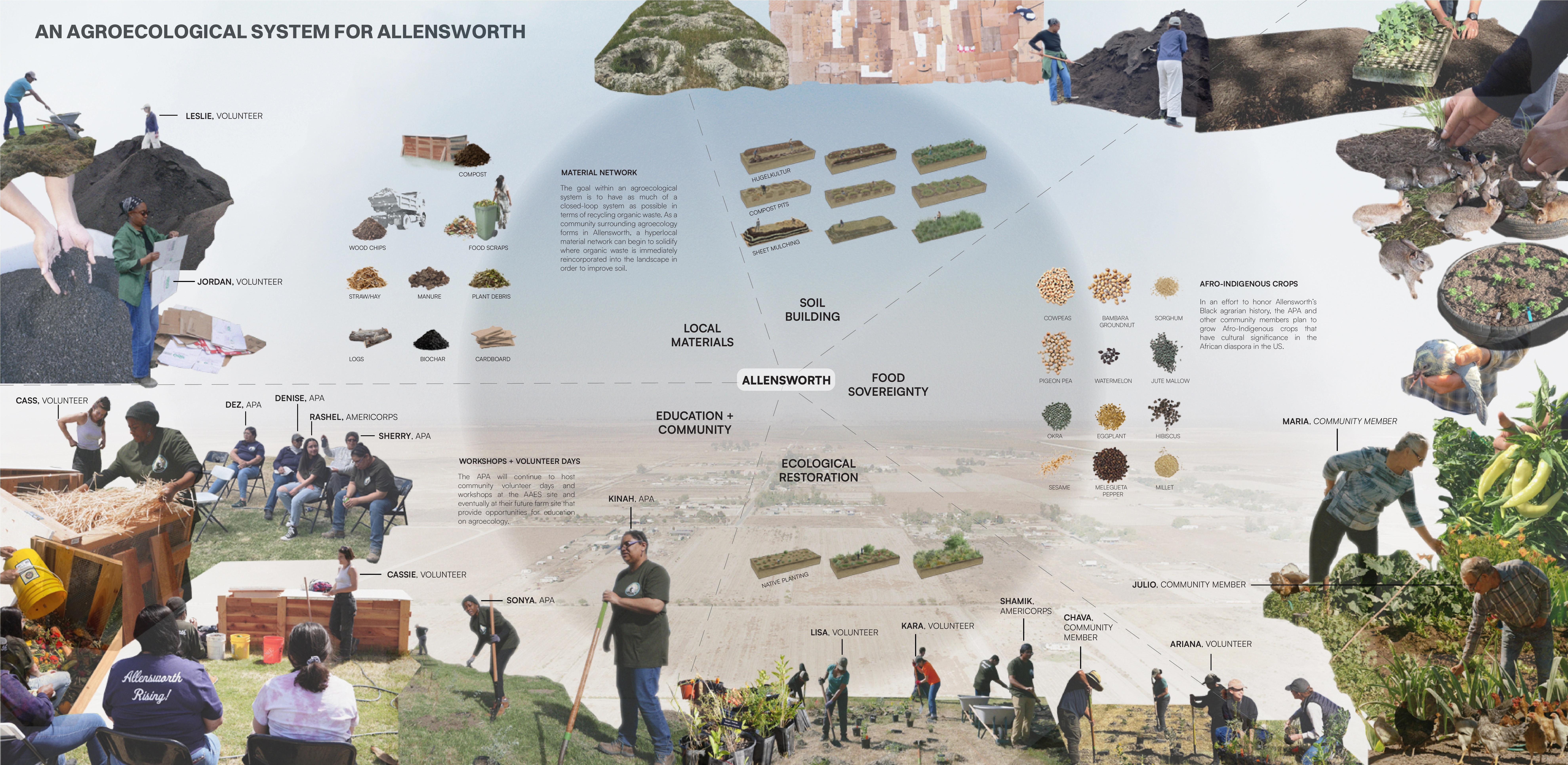 Current agricultural systems in California’s Central Valley cause extreme environmental degradation and contribute to ecological and public health crises. This project engages the Central Valley community of Allensworth in the development of a new place-based framework for regenerative agriculture. The Allensworth Agricultural Experiment Station (AAES) is a 4,000-square-foot site in Allensworth, CA, that investigates holistic and community-based techniques for food-producing landscapes. Its focus is on promoting ecological health, repurposing materials in the organic waste stream, increasing food sovereignty in the community of Allensworth, and reigniting its radical agrarian history.