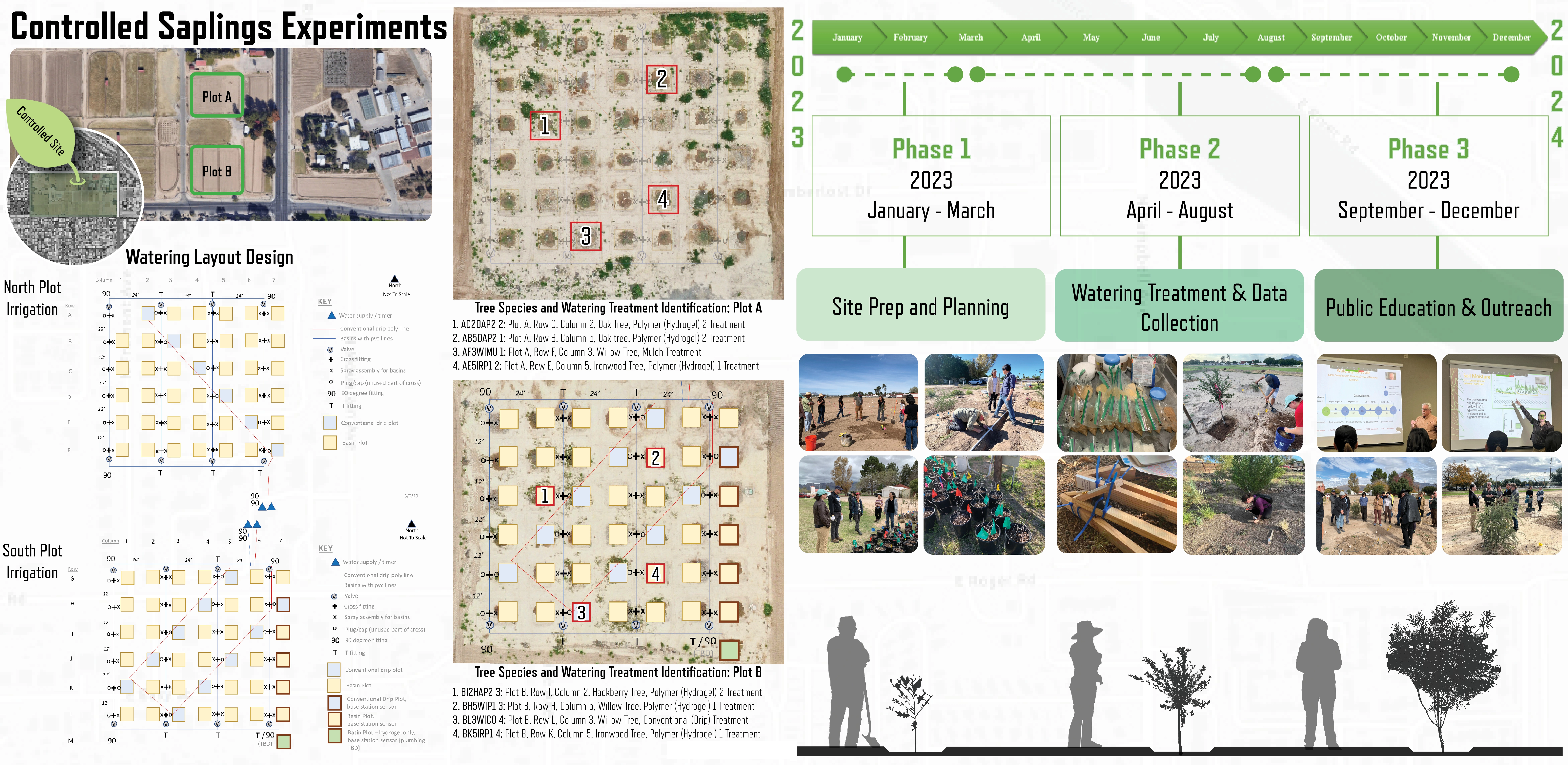 Over the next year, we will conduct additional soil analyses to determine the impact of smart watering treatments on soil organic carbon and water-holding capacity to further optimize growth during the establishment period. Observations will continue as scheduled to further validate the effectiveness of the experimental treatments. Additionally, specimens will be unearthed to allow for the study of root structure and development.