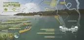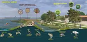 A series of artificial reefs and living shoreline structures along the edge of the historic river’s edge will accrue sediment flowing downstream. These offshore interventions will generate new marshland habitat, sequestering carbon and mitigating storm damage. Blue carbon credits from the growing salt marsh offer a new regional opportunity for economic growth. The profits from these blue carbon credits can support park maintenance and development.