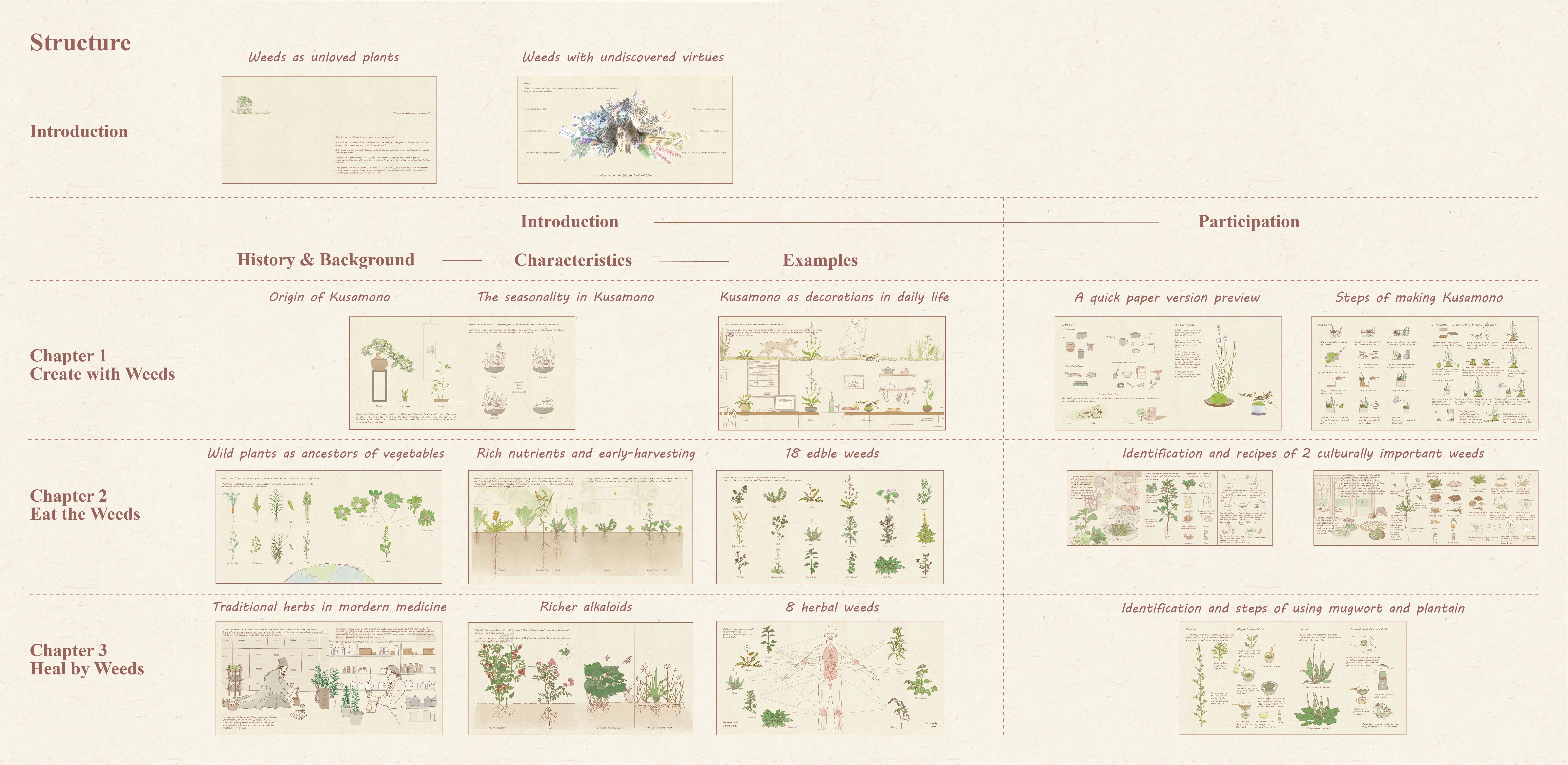 2. An integral educational product that includes multiple aspects of weeds, including aesthetic value, use value (edible, medical, and dyeing), ecological value, and management.