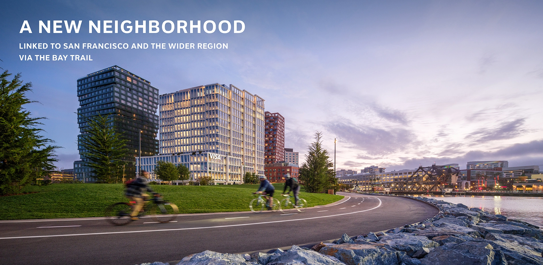 The park connects Mission Rock with the region through the San Francisco Bay Trail, connecting the southeastern waterfront to a 350-mile trail network, downtown San Francisco, and South of Market. Once complete, the Bay Trail will provide a continuous pedestrian and cycling corridor around the San Francisco Bay.