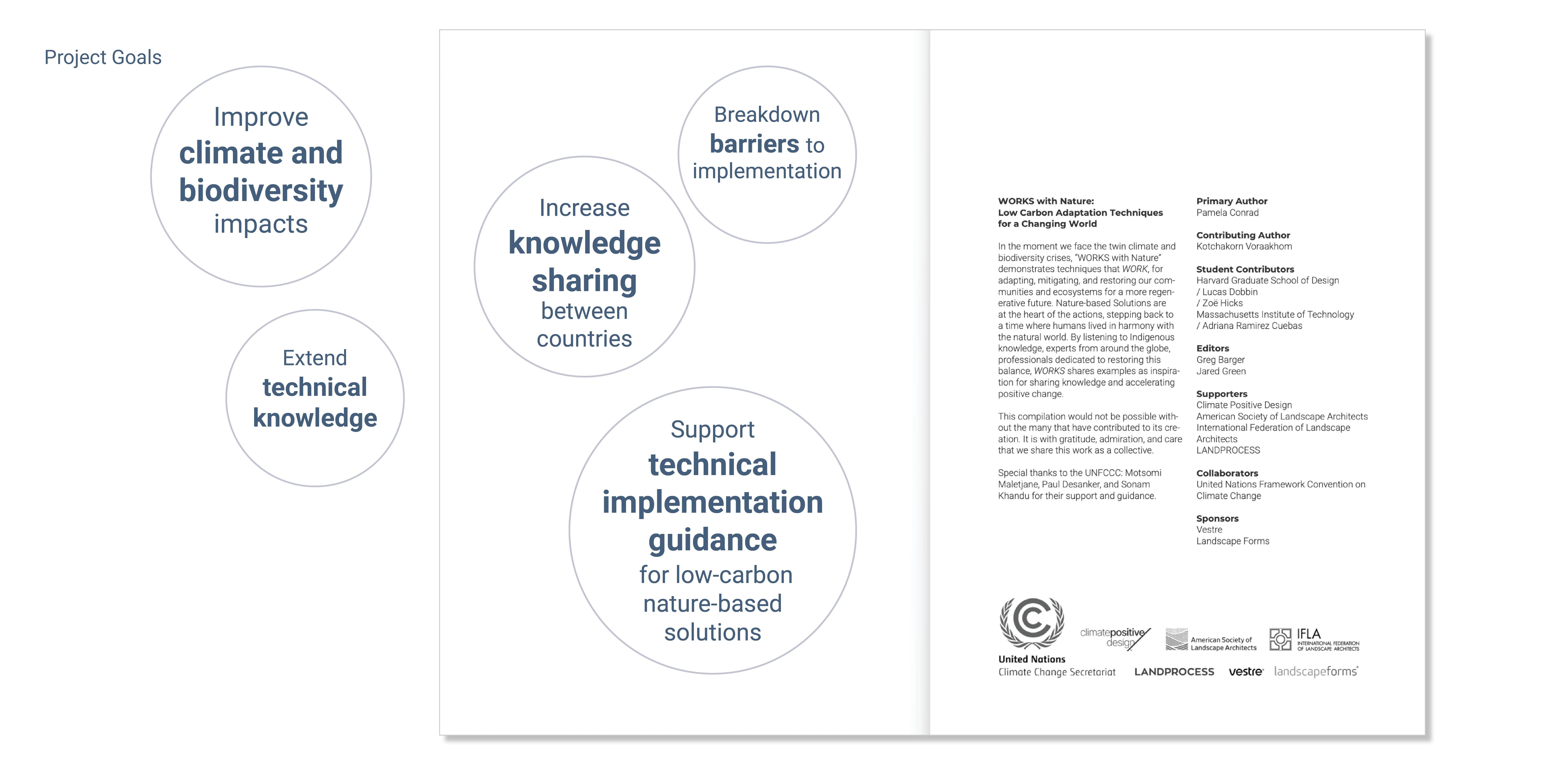 This effort culminated in the publication of WORKS with Nature: Low-Carbon Adaptation Techniques for a Changing World, a guide developed under the leadership of ASLA Climate Action Plan founding Chair Pamela Conrad and UN-award-winning landscape architect Kotchakorn Voraakhom. The guide aims to elevate the role of landscape architects in global climate and biodiversity solutions.