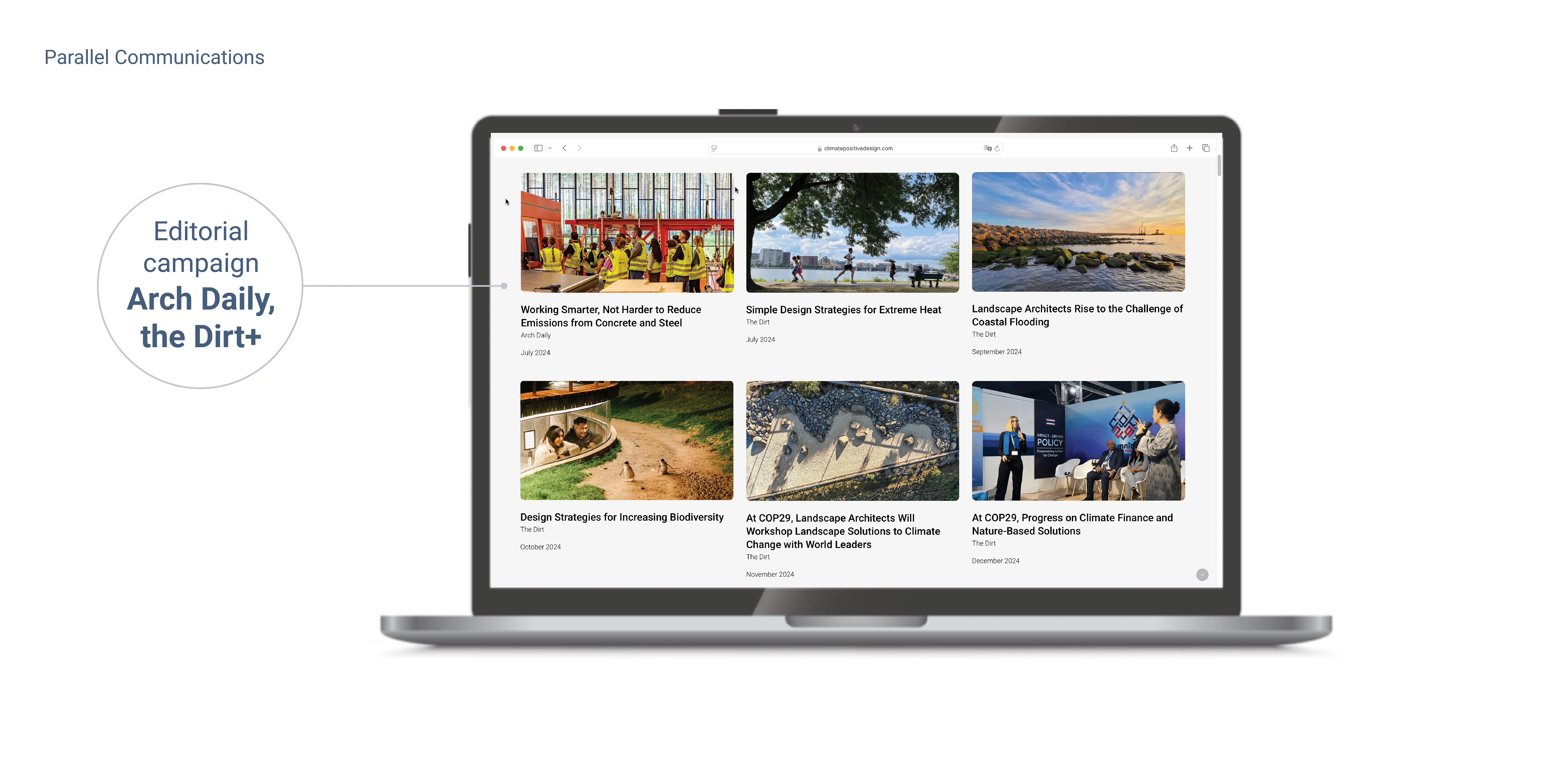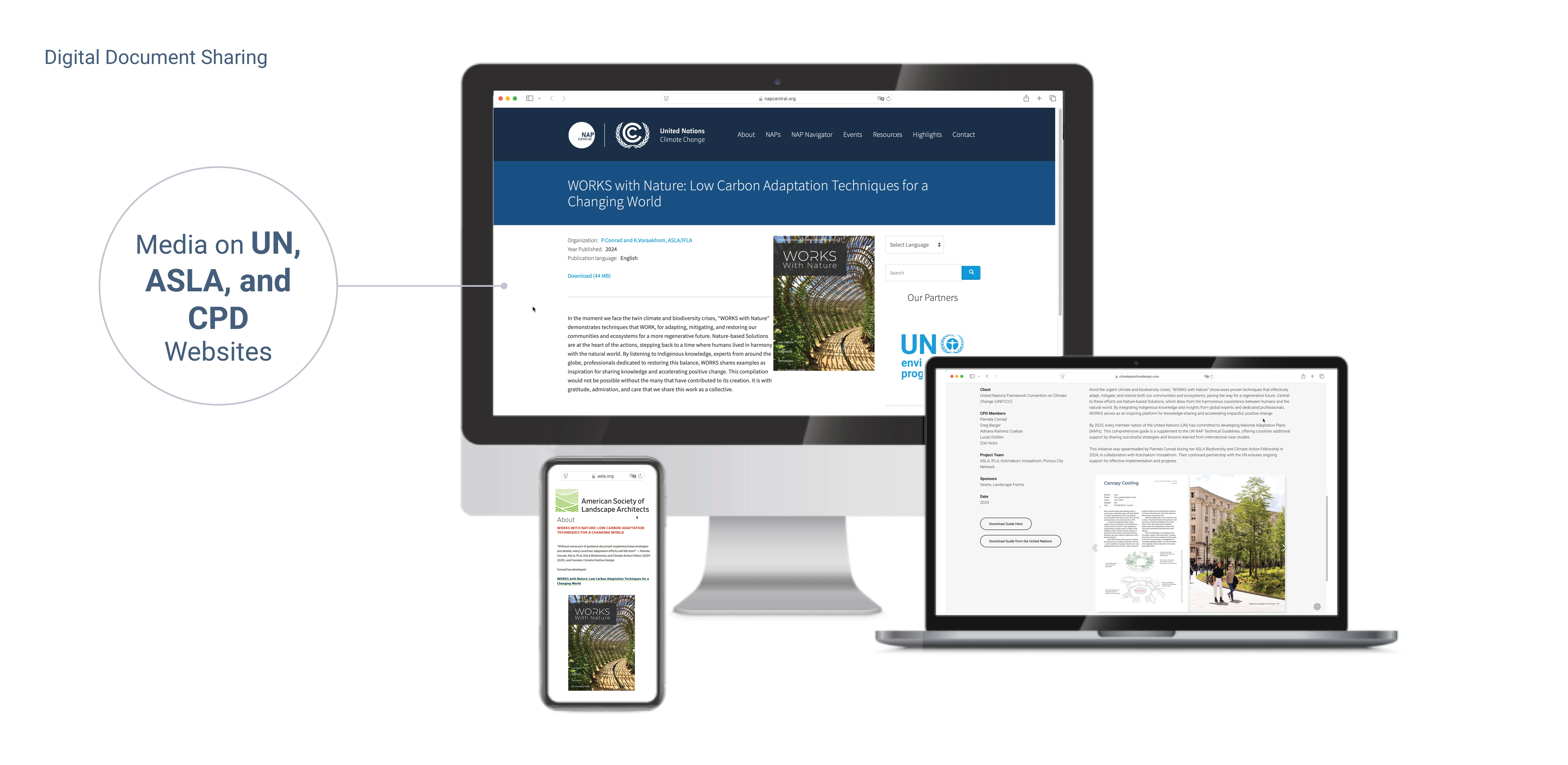Key findings have been shared through various publications and social media. The guide is available for download on the UN, Climate Positive Design, ASLA, and IFLA websites.