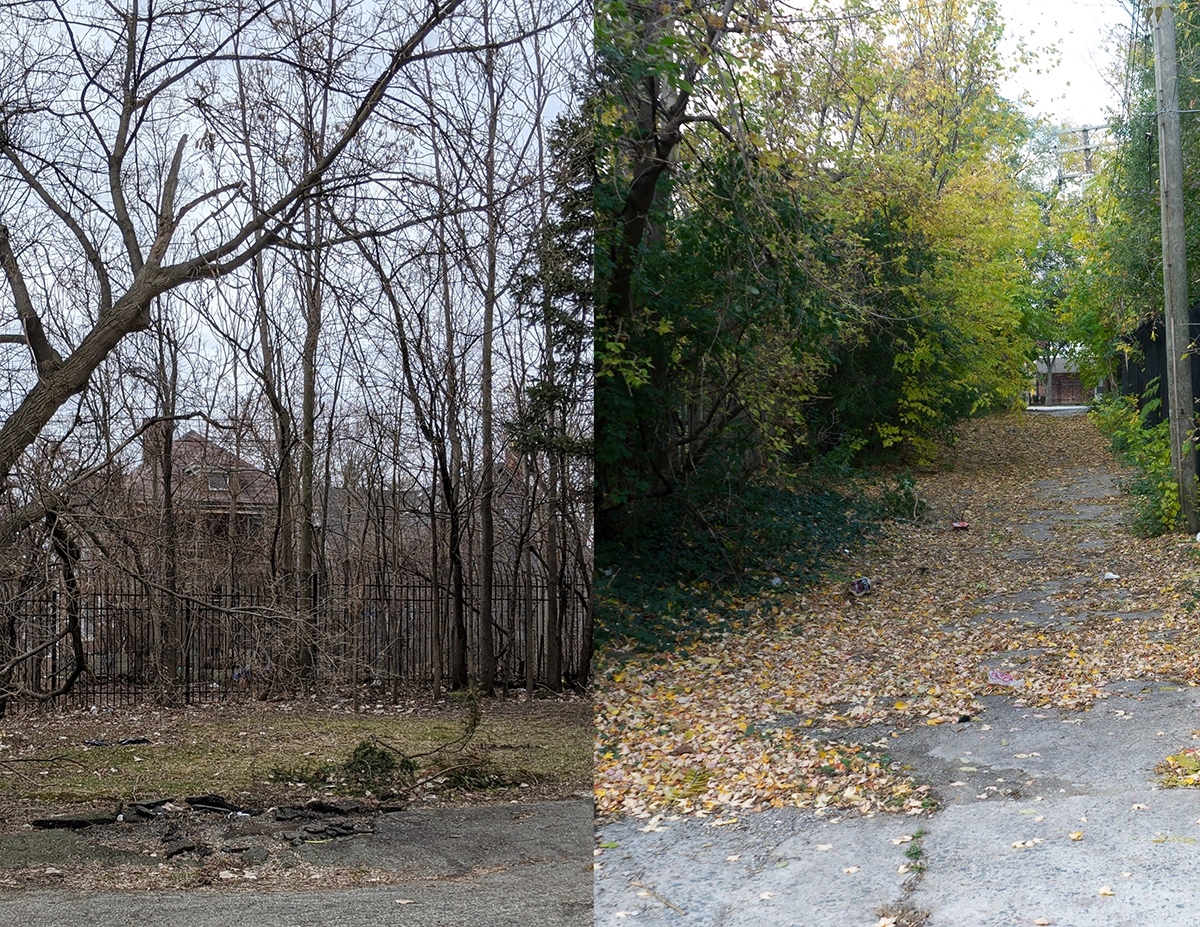 Location: The Shepherd Art Park is a 3.5 acre block in Little Village, Detroit, characterized by decaying single-family residences and vacant lots. Close to the Detroit River, the site is home to an empty 19th c. Romanesque church. The site was overgrown with invasive plants and littered with debris, broken glass, and crumbling building materials.