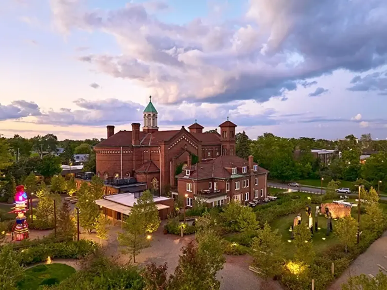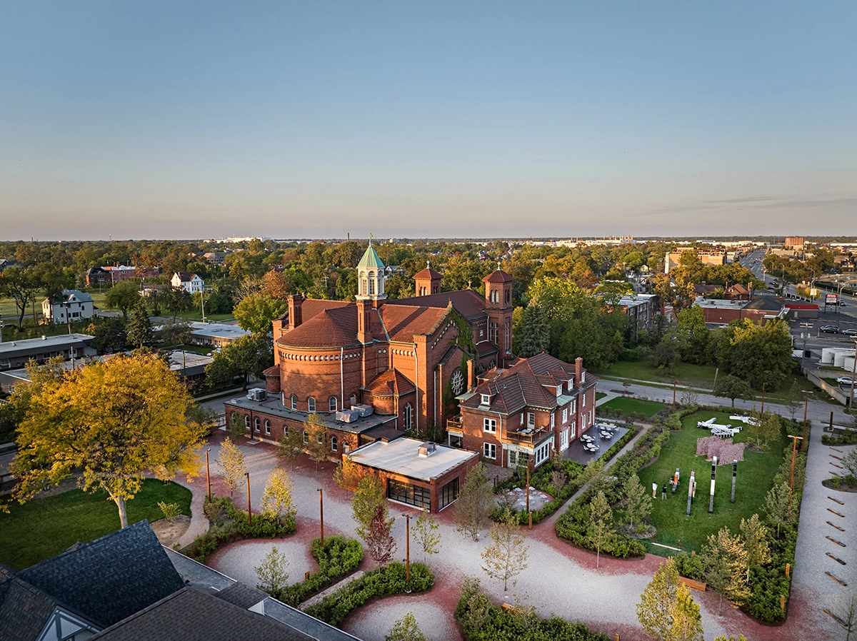 Scope and Size: The client requested an arts campus with diverse program and a strong community focus. Site constraints included inaccessible grades, poor drainage, a functional municipal alleyway, and centuries of degradation and building ruins. Aimed at contributing to the city’s artistic renaissance, the client’s program requests included outdoor art galleries, a sculpture park dedicated to Detroit artist Charles McGee, play areas, outdoor F&B, events spaces, and a new skate park designed in collaboration with Tony Hawk. Existing buildings including the church, rectory, garage, and farmhouses were adaptively repurposed by multiple architectural groups into galleries, workshops, studios, and F&B spaces.