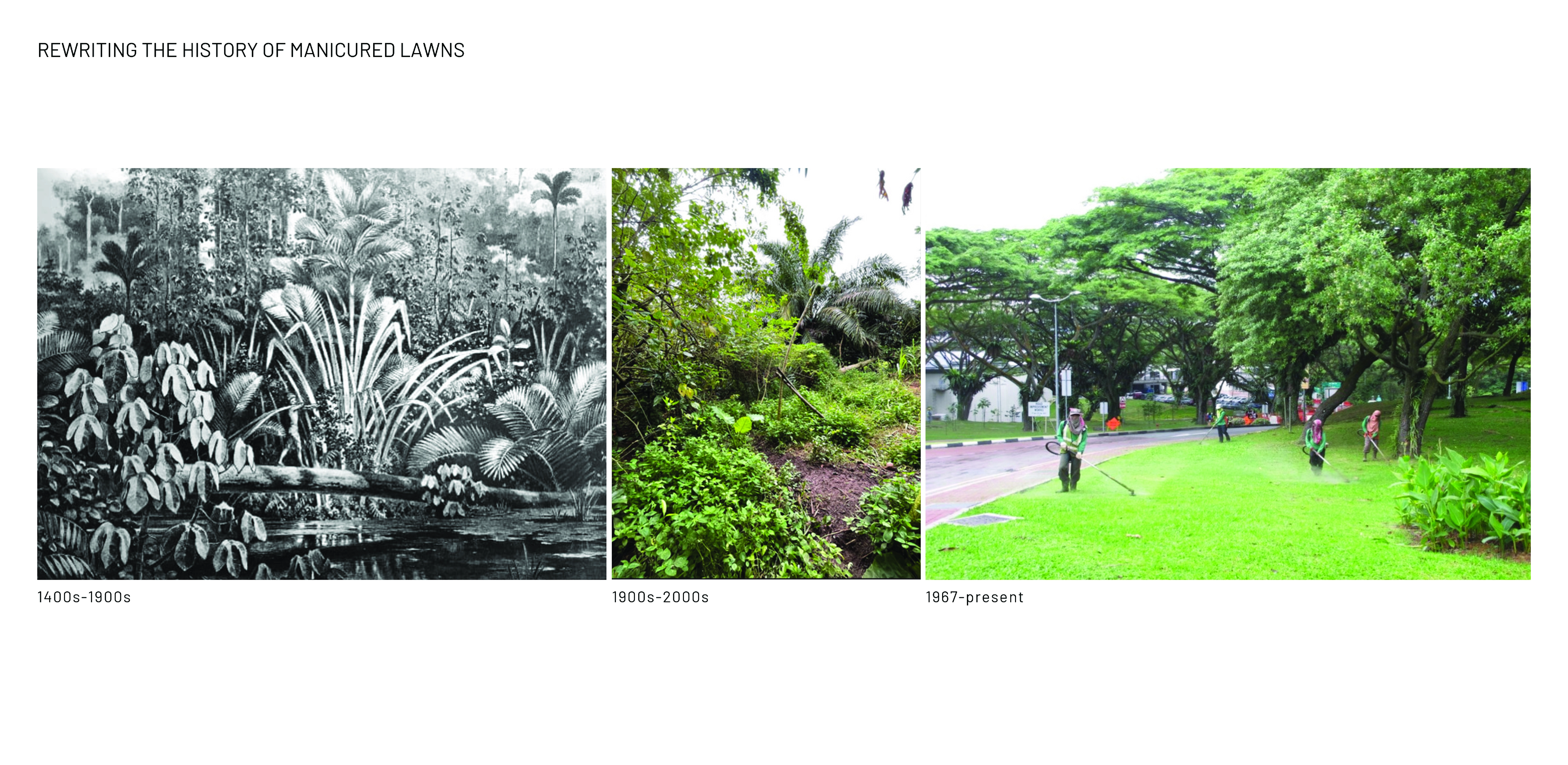 This student-led project presents a rewilded landscape that blends nature conservation with community farming, reconnecting city dwellers to the "Kampung Spirit" of community connectedness. Through organising activities that tap on the university community and collaborators, manicured lawns are turned into a living lab with integrated food-growing functions, boosting biodiversity, preserving sociocultural values and enhancing educational opportunities. This garden fosters environmental stewardship and demonstrates rewilding's potential to redefine urban green spaces, providing a model for institutions to learn about the importance of combining natural processes with thoughtful human intervention to achieve a sustainable campus greenery.