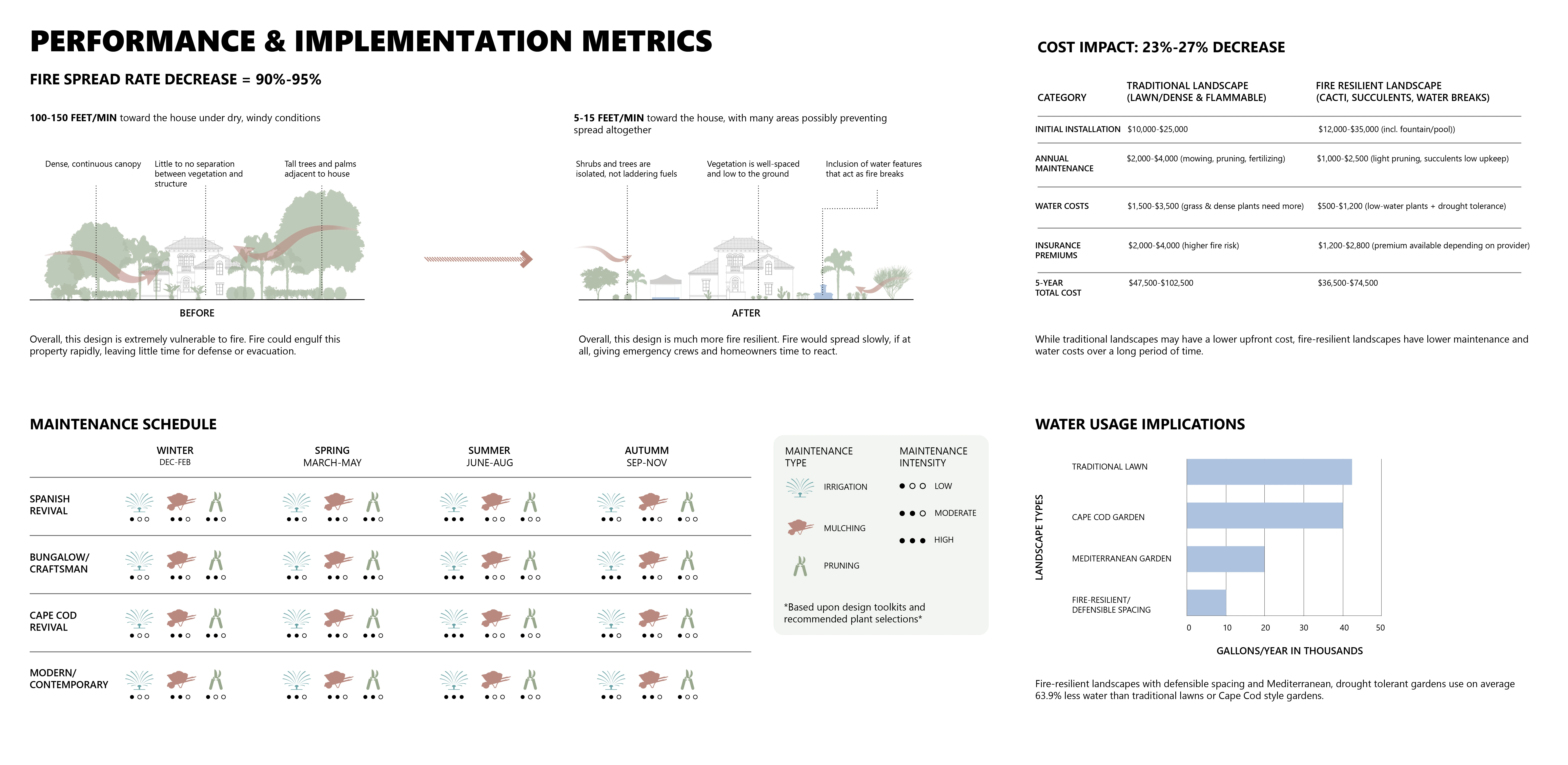 This project is award-worthy for its integration of ecological research, spatial design, and practical application. It not only equips individual homeowners with the tools to create safer, more resilient environments—it also offers a scalable model that can be adapted across other fire-prone regions. By weaving fire science into everyday residential design, the project reframes resilience as a proactive, community-empowering approach rather than a reactive, emergency-driven one.