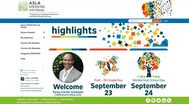Launched in 2021, DREAM BIG with Design is ASLA's first conference experience for prek-12 student and educator audiences. To date, DREAM BIG with Design events have included two virtual conferences, one in-person conference, and one professional development event for educators.