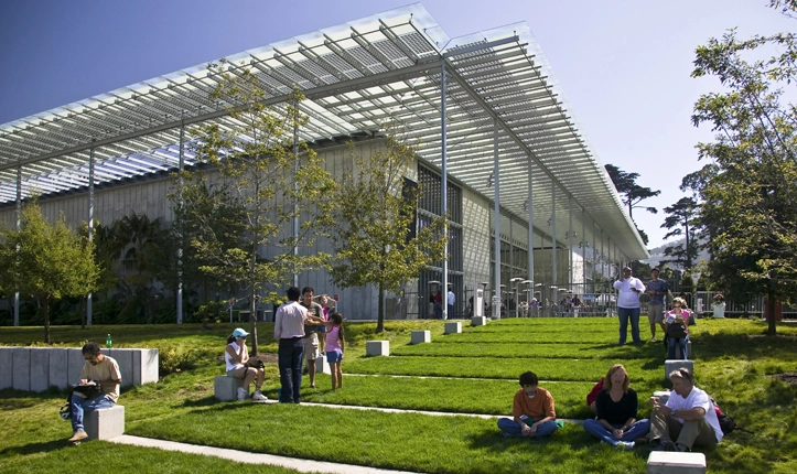 - A 3,500-square foot observation deck creates an outdoor museum exhibit with scenic views of the green roof and Golden Gate Park. The deck can hold up to 200 people.
