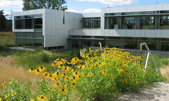 - Approximately 64 percent of the 2.74-acre site is ecologically restored green space. The prairieland habitat includes more than 100 different native grass and wildflower species.