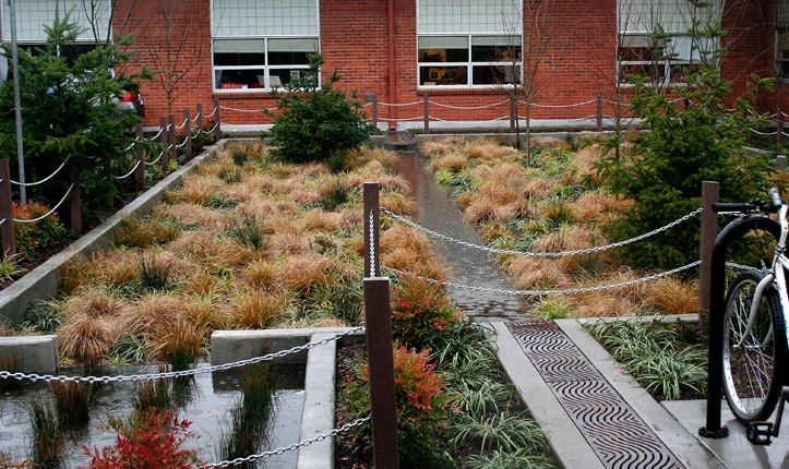 - The 2,000 square foot rain garden manages the water runoff from over 30,000 square feet of parking and rooftops.