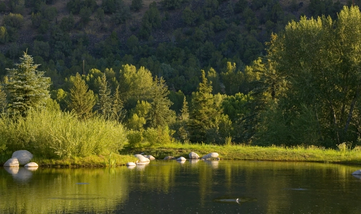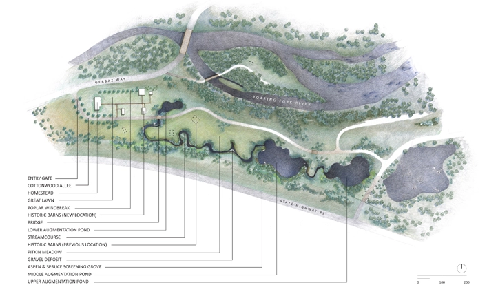 - The 40-acre Colorado ranch sits at an elevation of 7,200 feet and occupies a flat glacial terrace above the Roaring Fork River.