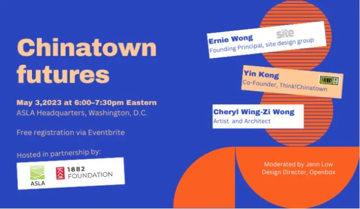 Ernie Wong, FASLA, Jenn Low, PLA, Yu-Chung Li, ASLA, and Jim Lee, ASLA - held an in-person lecture on Chinatowns with Chinatown Futures: Cultivating Urban, Cultural Landscapes at National ASLA headquarters on community, identity, and stewardship of cultural landscapes across Chicago, New York City, Calgary, and Boston Chinatowns.
