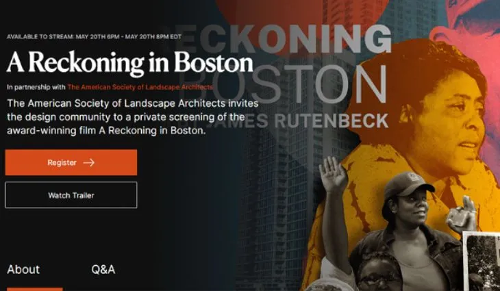 National ASLA with Boston ASLA hosted a private screening of the award-winning film A Reckoning in Boston followed by a live, post-screening discussion with the filmmaker James Rutenbeck and subject Kafi Dixon.