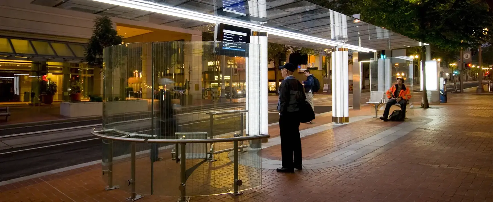 Public transportation must be universally accessible if we want to connect neighborhoods to the larger region. The Portland Mall Revitalization project, designed by ZGF Architects and landscape architects with Mayer/Reed, runs the entire length of downtown Portland, Oregon, connecting six districts (see image above). It creates a multi-modal street that incorporates Metropolitan Area Express (MAX) light rail trains, buses, cars, bikes, and pedestrian traffic. The trams meet the stops at grade, offering a seamless transition between the sidewalk and public transit, increasing the ease with which people can enter and exit public transportation. Covered waiting areas that are evenly well-lit at night, seating with arms, and easy-to-read signage and auditory signals improve accessibility.
