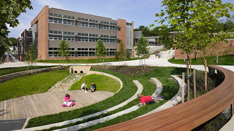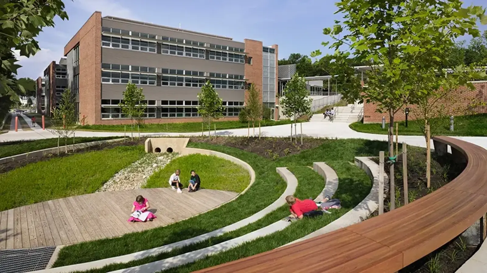 Landscape architects recognize that importance that green space can have on people and design school landscapes accordingly.