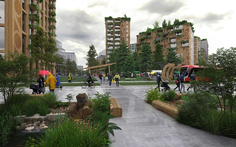 We went directly to the Host Nation cultural advisors, Tsleil-Waututh Nation knowledge keeper Charlene (Char) Aleck, and Squamish artist Cory Douglas and asked: what does a decolonized landscape look like to you? They wanted to imagine a place where they feel like they belonged. Right now, the way the False Creek area is set up, there aren't many places where they feel they belong.